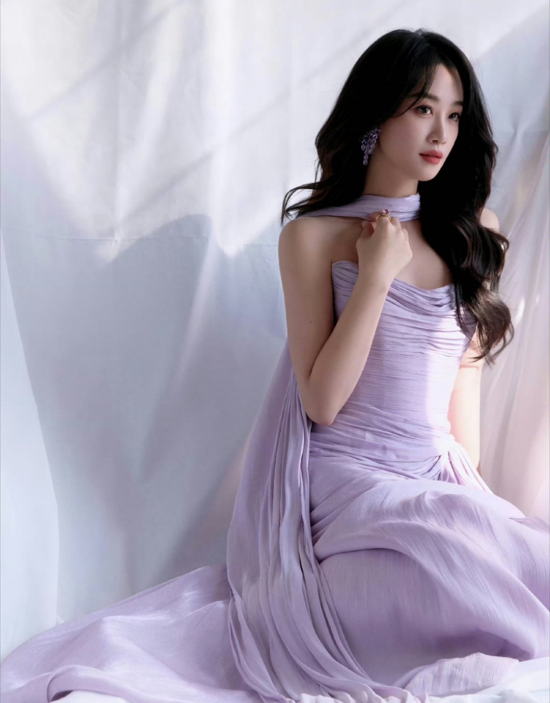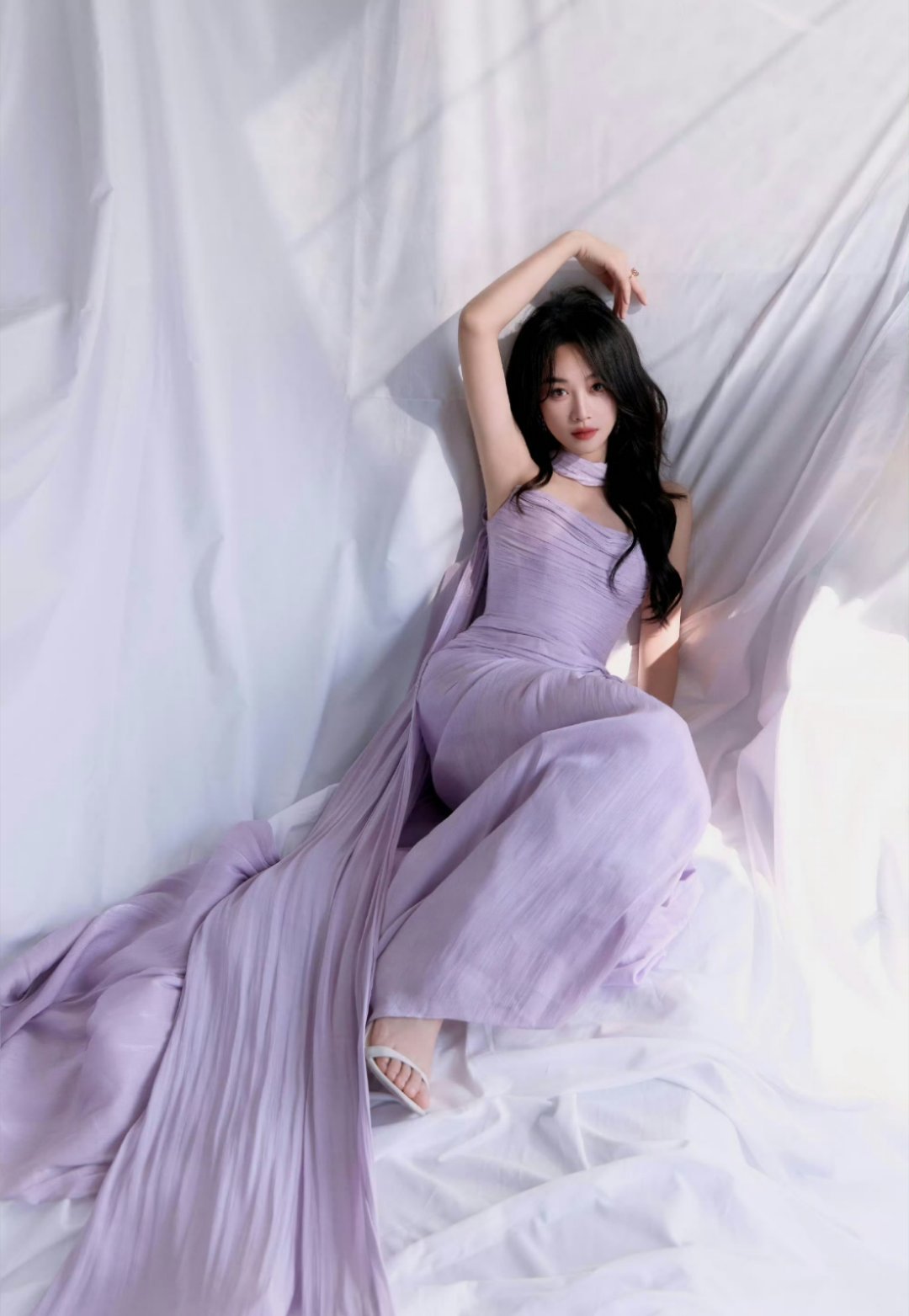 蓝盈莹 蓝得发紫 慵懒大卷发+水晶紫长裙,优雅又灵动,姐姐的状态也太好了!