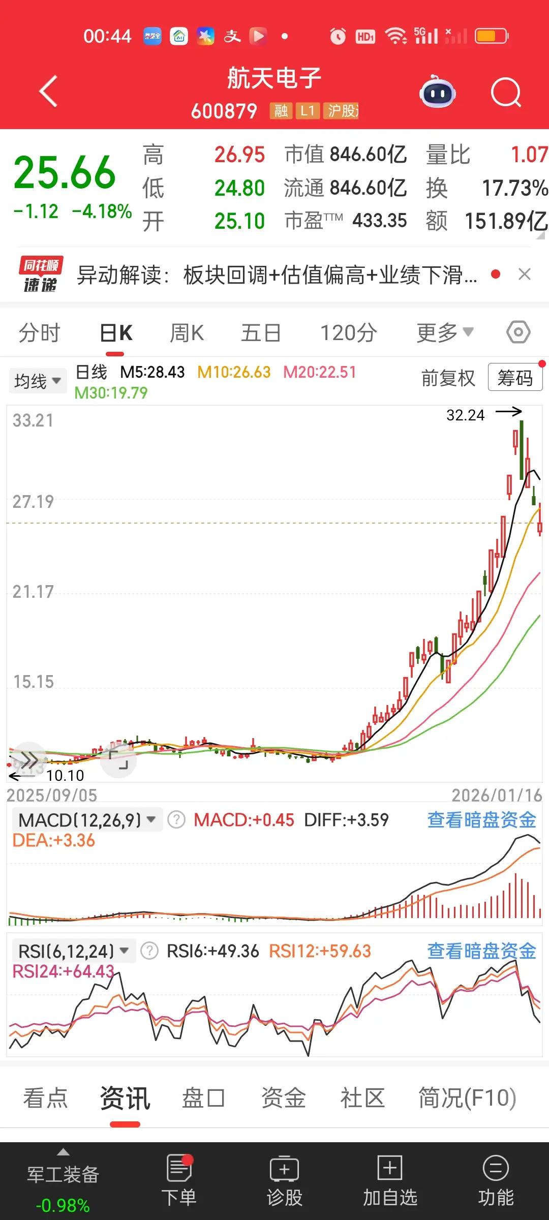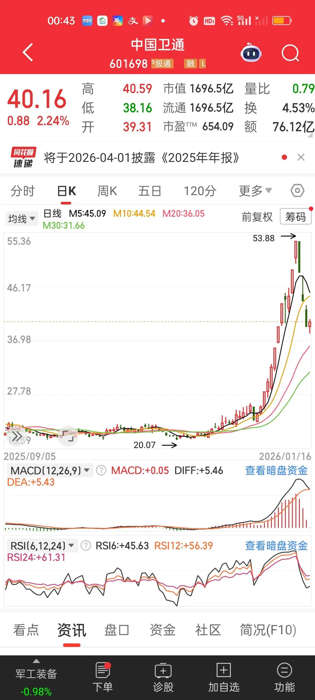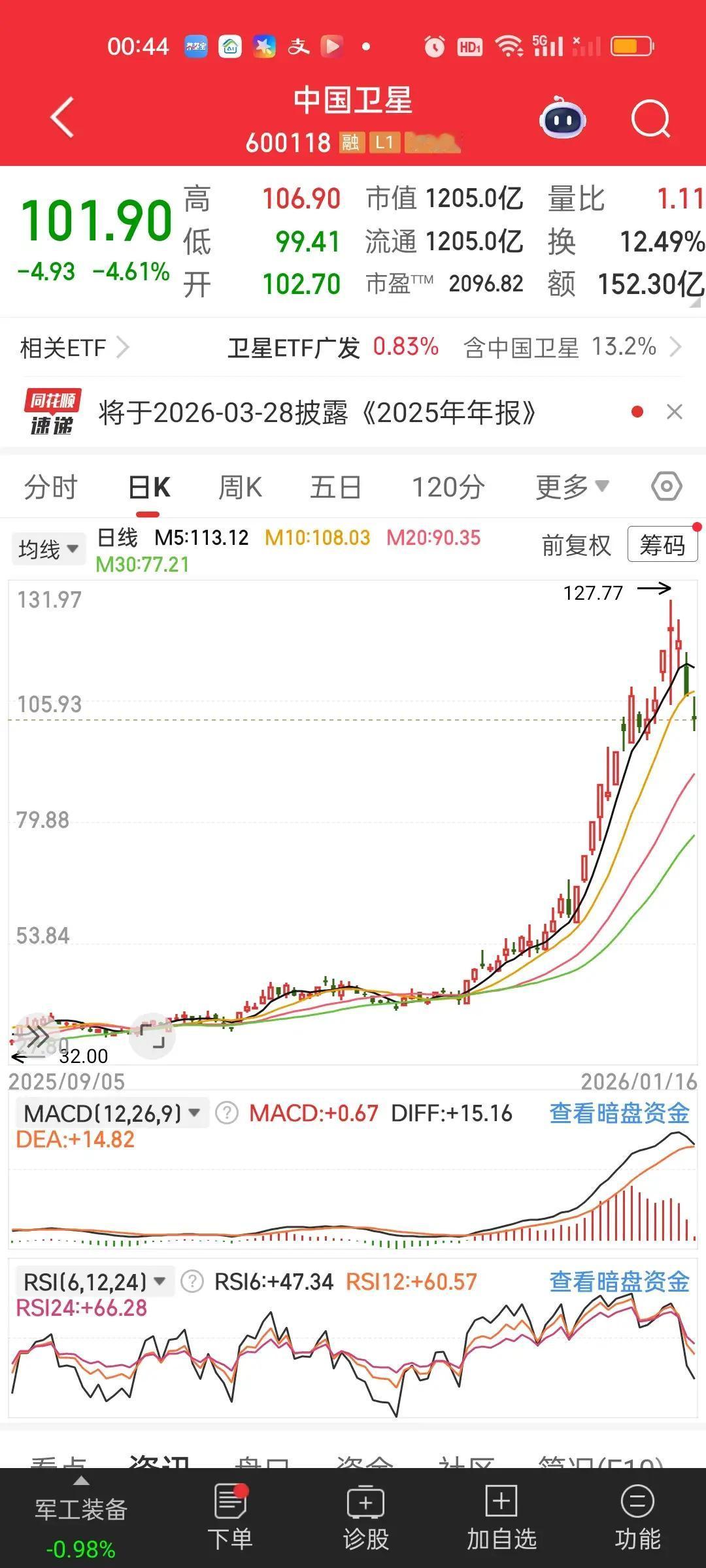 前面我们说过啊,假如一只个股它一直单边上涨,涨到一定的高度肯定会有回撤,它的第一次回撤我们保守估计最低都要有30%以上,所以第一轮回撤一定是所有回撤里面最猛最凶狠的,不仅速度快,跌幅大,无反弹,更让人没有时间思考。 30%的回撤,往往在3--5个交易日就完成了。你如果刚好满仓追高在最高点附近买入,那这30%的跌幅你就吃的结结实实的,躲都躲不掉。第二轮,第三轮以后的每轮下跌不会再像第一轮这么猛烈,甚至阴跌1个月都有可能,但不会再看到几个交易日大跌30%的画面了。所以第一轮暴跌能躲过去是最好的,躲不过去就把仓位降到最低,也可以避免一些损失。 我们可以清楚的看到商业航天几只核心个股,周五最低点已经十分接近30%了,所以下周一再大跌一下基本也就到位了。刚好三十二号卫星发射的消息出来了,利用消息打压一波也是很好的,敢砸就敢吸。 一只股票下跌30%后,需要上涨约42.86% 才能回本 。很多人会误以为跌了30%只要涨30%就能回来,但这是错误的。举个例子:假设你10元买的股票,跌了30%变成7元。你的资产缩水了。计算逻辑:现在要从7元涨回10元,这3元的涨幅是相对于7元(当前本金)来说的,所以需要的涨幅高达42.86%。