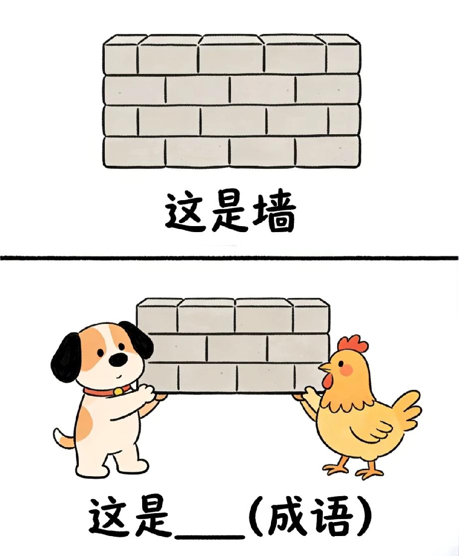 狗和鸡合伙“抬墙”,这成语能猜出来算我输!