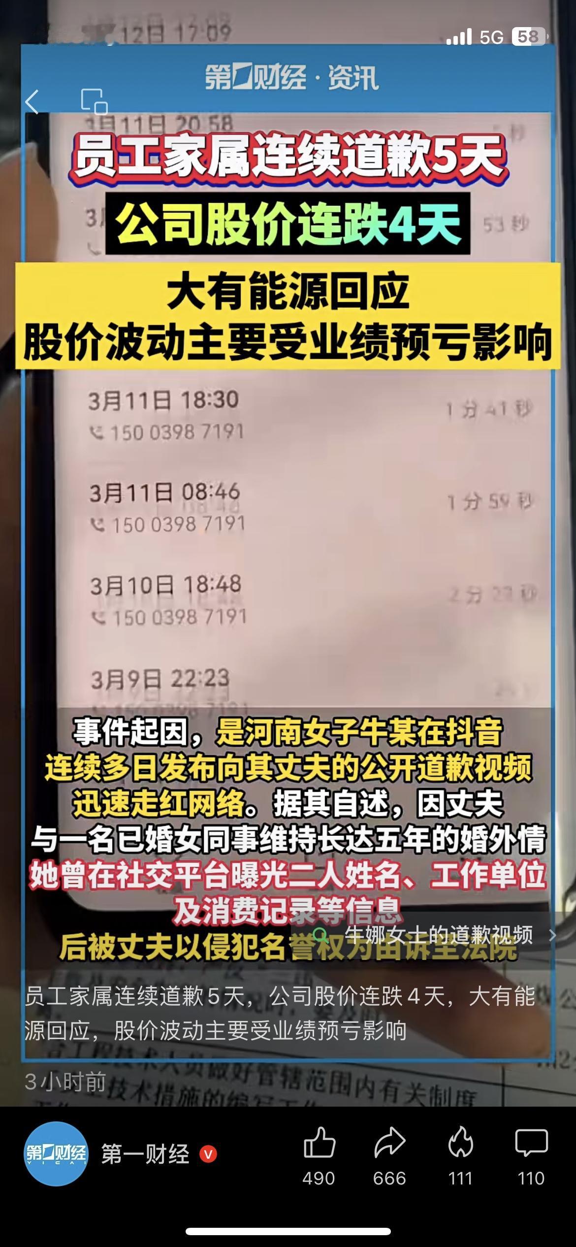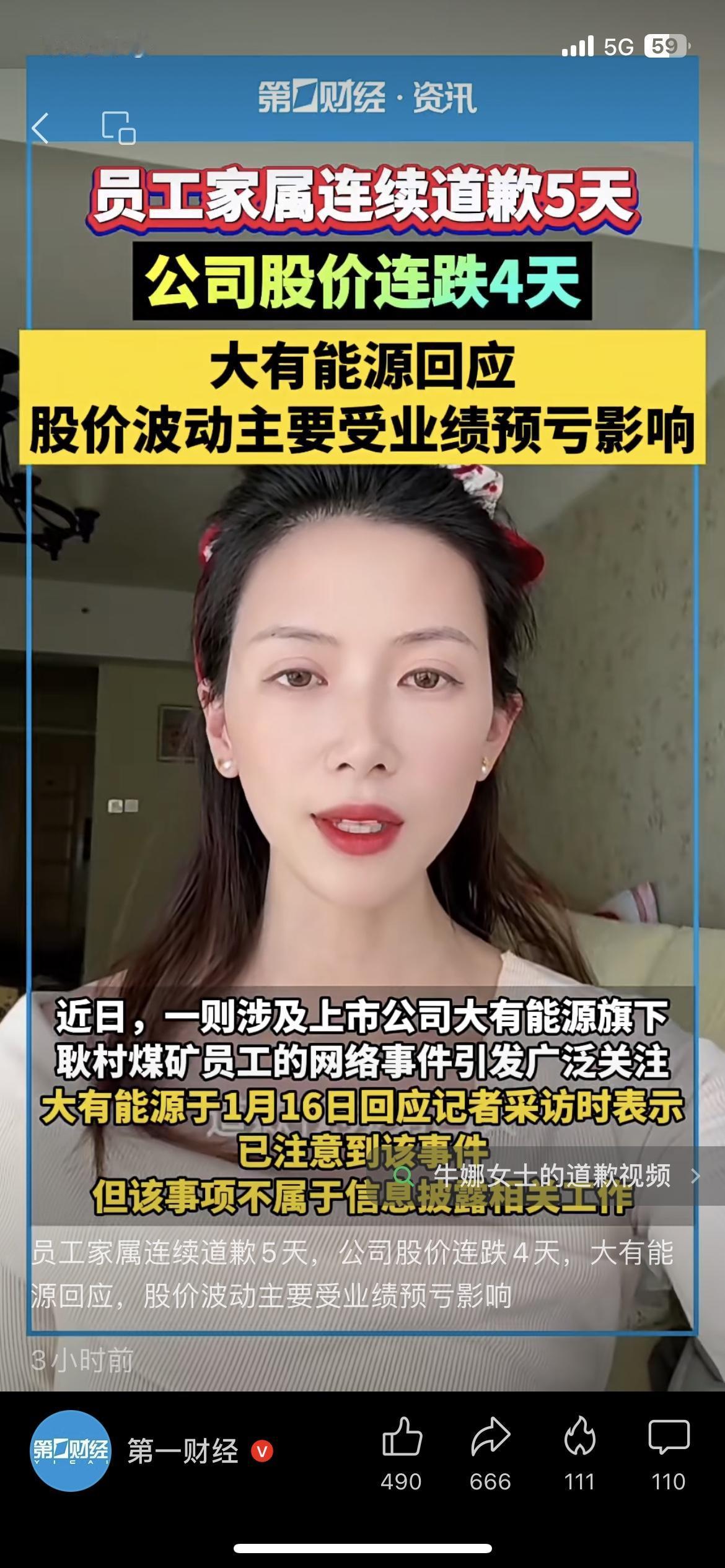 大有能源员工家属连续道歉5天,公司股价直接连跌4天!公司回应说是业绩预亏,可股民们都在猜这瓜到底有多大,不少人直接被套超15%! 员工的家务事,股民的血汗钱,上市公司的瓜从来都不简单。 你买过大有能源吗?遇到这种舆情雷会果断止损跑路吗? 大有能源 A股舆情雷 股民日常