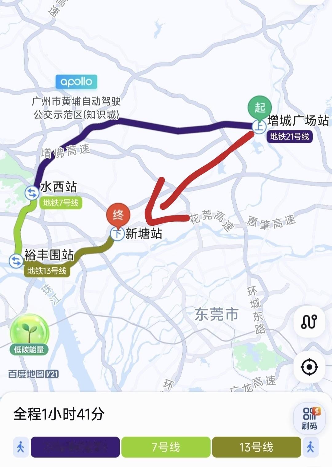 增城去新塘站也太绕了吧 如果6号线能延长到新塘站,最起码不用绕到老黄埔。 地铁 轨道交通 出行交通方式