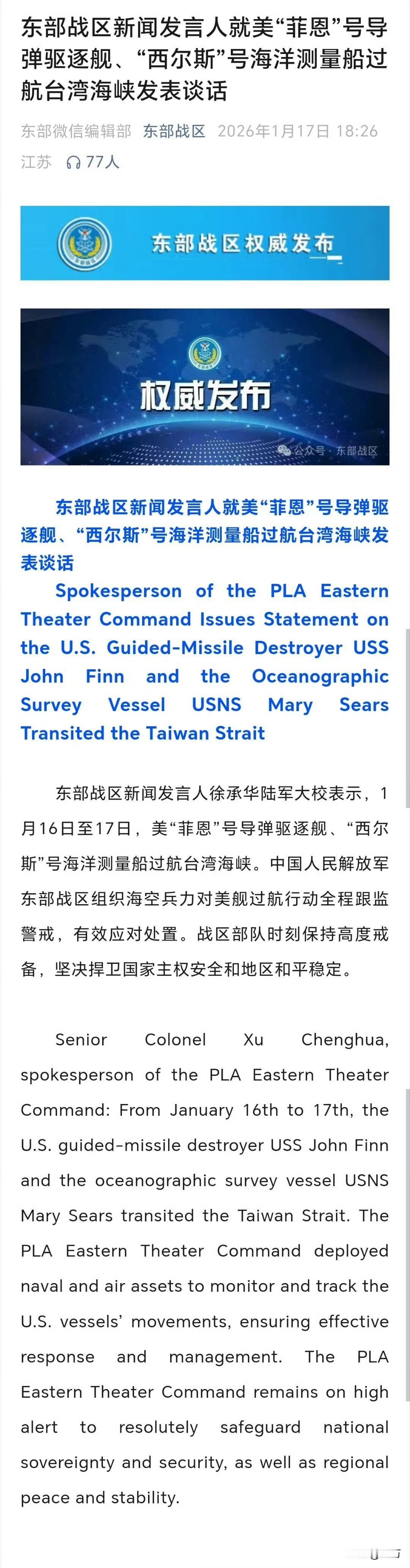 今天晚上6:26,东部战区发表谈话! 今天晚上6:00过,东部战区在自己的官方