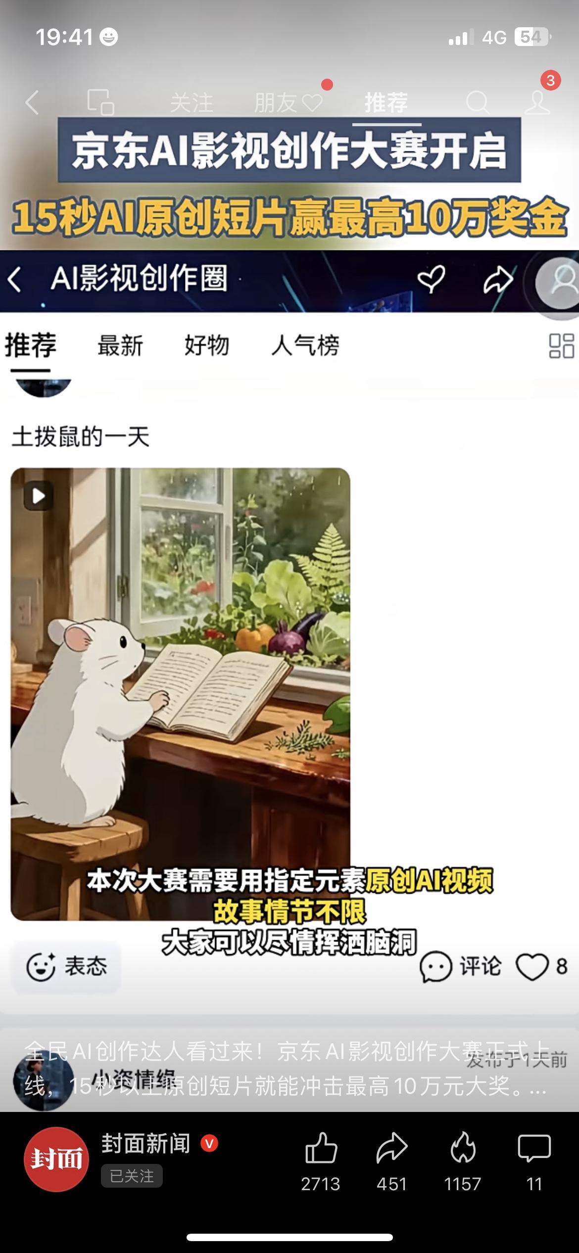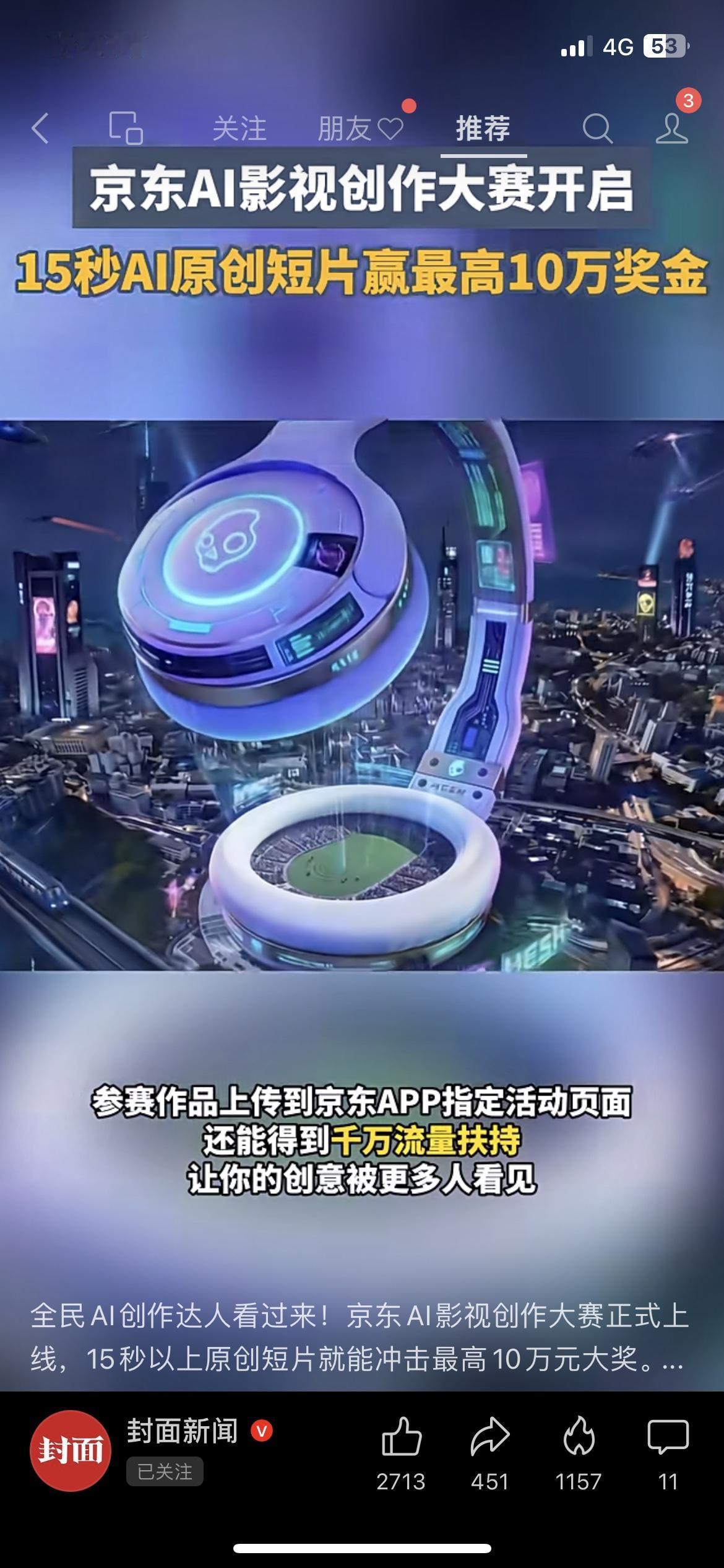 京东撒钱!15秒AI短片最高赢10万奖金,还送千万流量,小白也能参赛变现! AI时代,普通人靠脑洞就能赚钱? 你准备冲奖薅羊毛吗? 京东AI影视大赛 AI创作变现 普通人赚钱机会 千万流量扶持