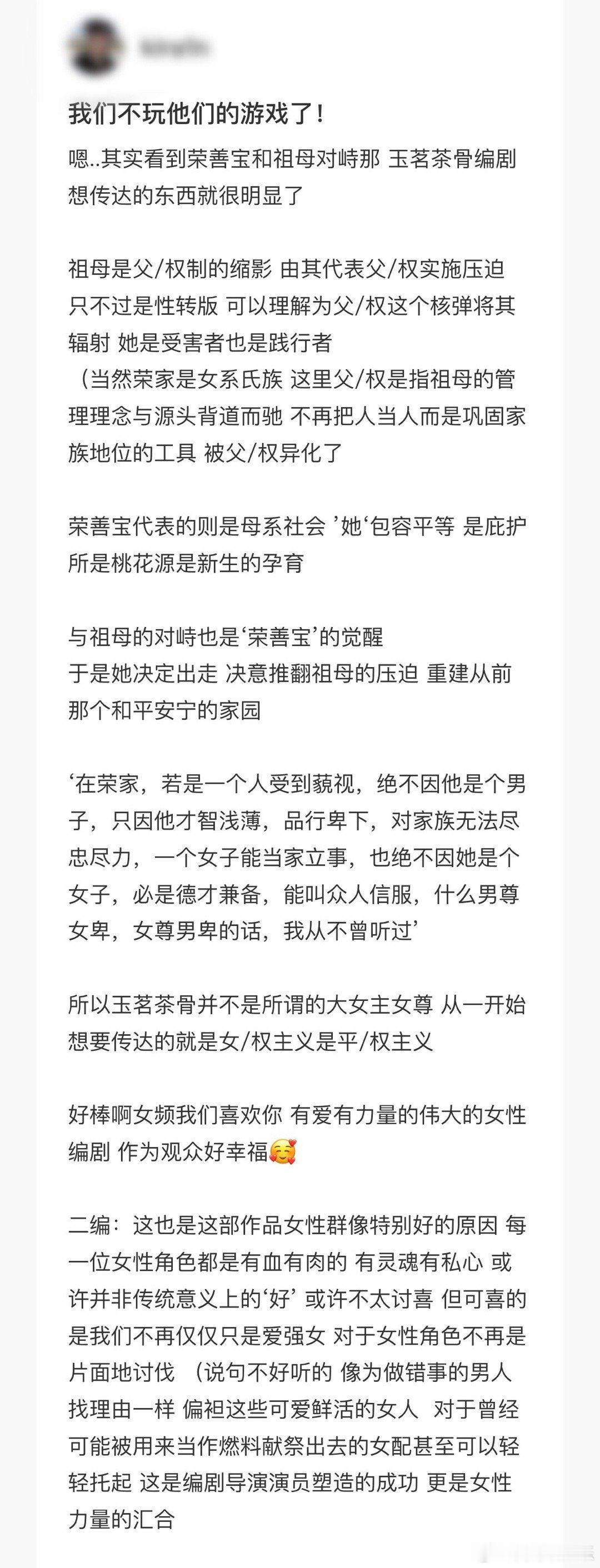 玉茗茶骨伟大的女性编剧 编剧的视角太独特!把祖母塑成性转“父权”象征,荣善宝以母系精神破局,女性不再内耗,彼此依靠,这份温暖的力量直击人心!