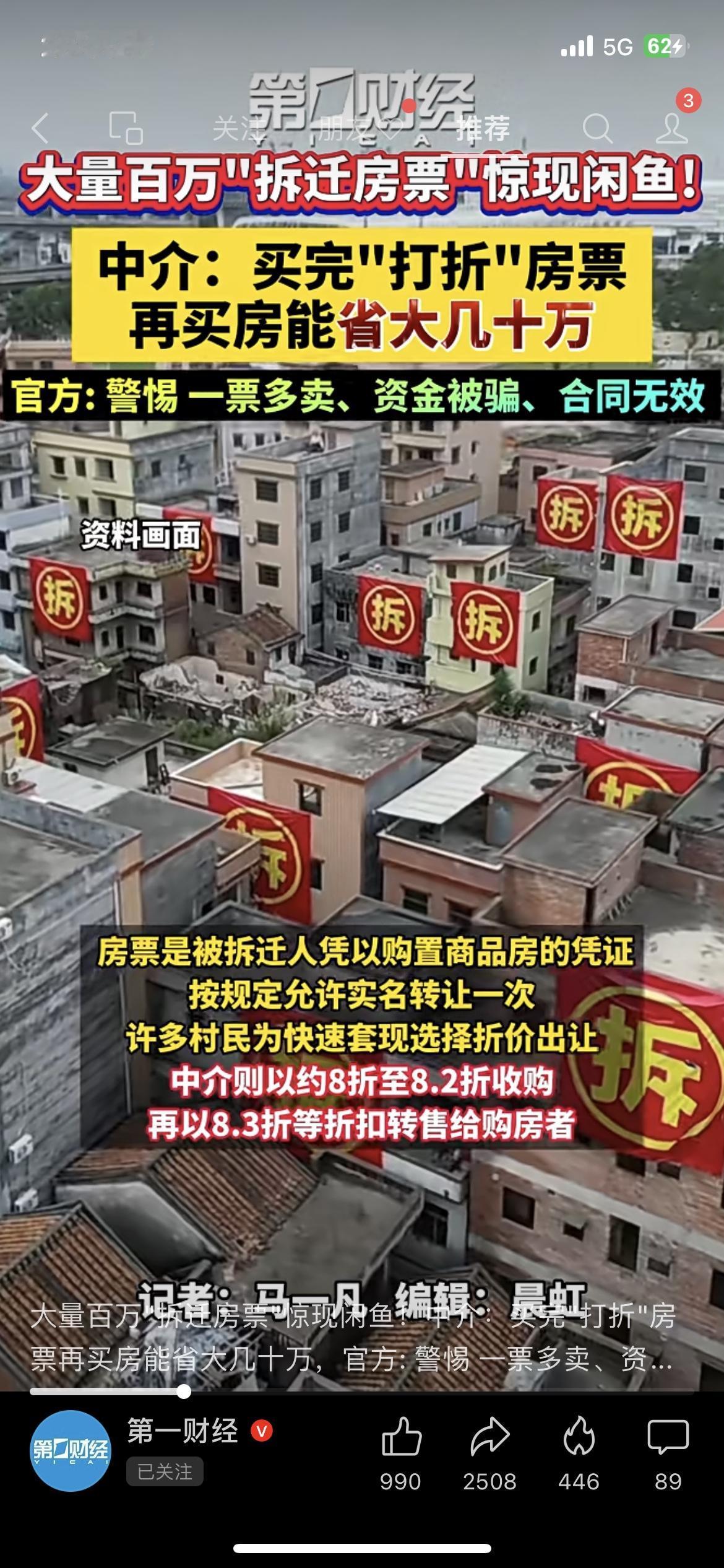 闲鱼惊现百万拆迁房票!中介叫卖8折票,宣称买房能省几十万?官方紧急预警:私下交易合同无效,小心一票多卖、钱房两空! 天上不会掉馅饼,“打折房票”可能是陷阱。 你敢买这种8折拆迁房票吗? 拆迁房票 房票交易 楼市风险 闲鱼黑市