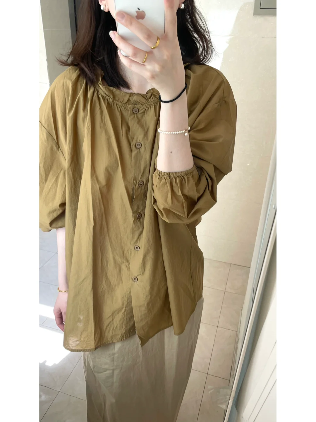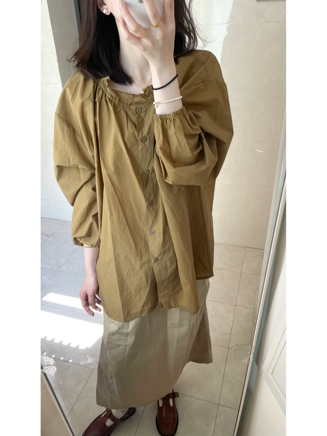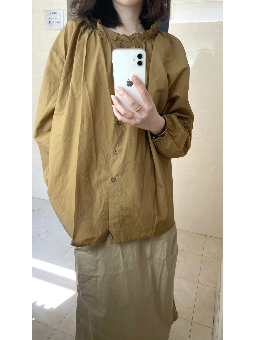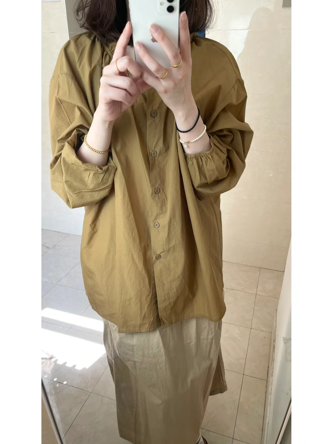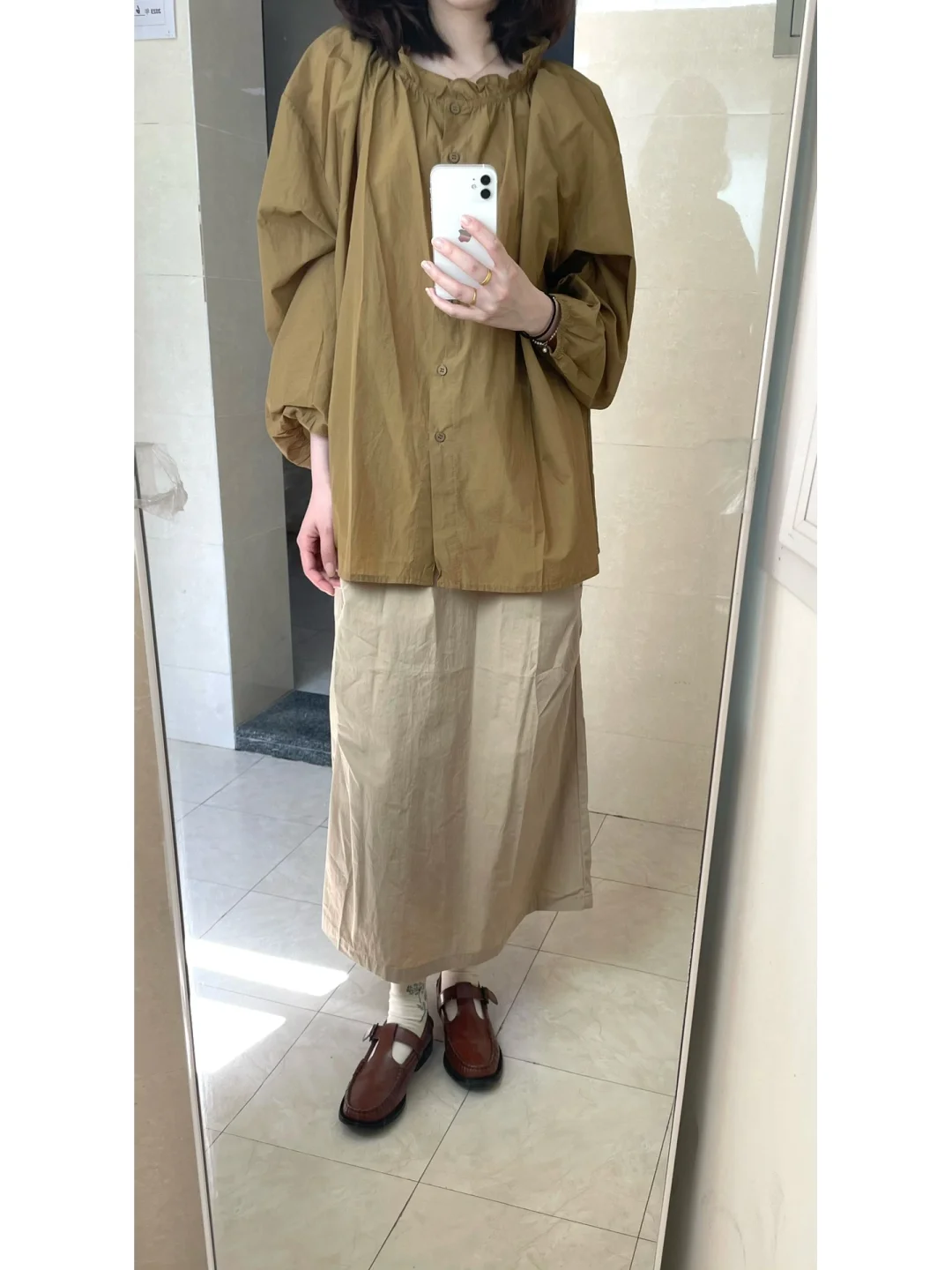 优雅东方韵,浅蓝上衣配米色长裤,漫步古风庭院,尽显时尚与古典的完美融合。