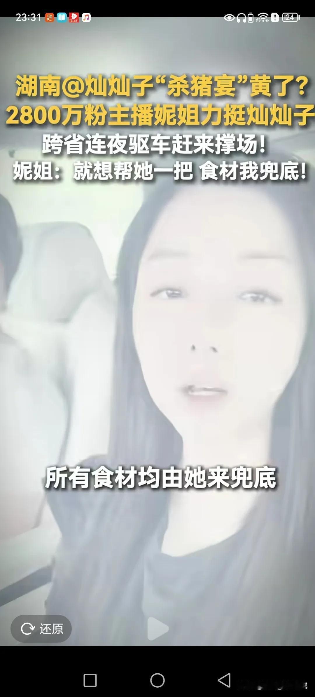 灿灿子18号,继续搞杀猪团圆饭。 这次老乡,大网红妮姐连夜跨省来助力灿灿子把团圆饭搞起来了。 不仅出力,还准备食材支持。 灿灿子得到贵人,这位妮姐大网红2800万快手大网红,殷实家底有自己的实业。 灿灿子这次真的碰到贵人了,在抖音号里,把猪都拉回来了,桌子也摆好。 场地也找好了,其实大家当初是很看好灿灿子的,毕竟他是呆呆摁猪宴后,最早一批网红要搞摁猪宴的,都准备最充足的人。 但被捕抓到负面,让她人设直掉。 不知道明天能不能挽回一局。 看灿灿面相,她也是纯朴面相。