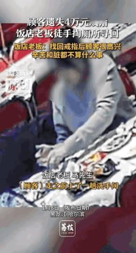 “活该发财!”1月8日,黑龙江哈尔滨,有个大姐在龙虾馆吃完饭准备走,发现手上4万块的戒指不见了,急得当场大哭。 这枚戒指是她的结婚纪念日礼物,对她来说意义非凡,突如其来的遗失让她瞬间崩溃,蹲在墙角捂着脸落泪,肩膀止不住地发抖,连邻桌食客都被这凄惨的哭声惊动,纷纷放下筷子投来关切的目光。 龙虾馆的员工们见状,立刻行动了起来。大家合力搬来三个大垃圾桶,十几个店员戴上手套,蹲在店门口把桶里的虾壳、油腻餐巾纸一股脑倒出来,铺开塑料布仔细翻找。 后厨阿姨特意戴上老花镜,把每一块碎虾壳都捏开检查,年轻服务员脸上溅到龙虾汤汁也顾不上擦,全神贯注地在垃圾堆里排查。 可整整忙活了一个小时,塑料布上的垃圾堆成了小山,那枚戒指却毫无踪影,仿佛从未出现过。 老板马先生看在眼里,先耐心安抚大姐,让她回家等候消息,自己则一头扎进监控室逐帧回看录像。 戒指个头极小,画面里只能勉强看到大姐手上有个微弱光点,马先生盯着屏幕看到双眼发酸,终于找到了关键线索——大姐中途去过一趟洗手间,回来后手上的光点就消失了。 目标锁定在卫生间,他立刻赶了过去。 马先生先打着手电往蹲便器管道里照,里面漆黑一片什么也看不见,又找来铁丝弯成钩子尝试打捞,结果只勾出一团沾满污渍的废纸。 常规方法行不通,他没多想,卷起袖子在手臂上套了好几层塑料袋,直接将手臂伸进了满是污秽的管道。 刺骨的污水裹着异味沾满手臂,他蹲得双腿发麻,换了好几次姿势才在管道弯道处摸到一个冰凉的硬圆环。 小心翼翼地将东西勾出来,正是那枚失踪的戒指。直到第二天,大姐拎着水果和红包专程来道谢,马先生才知道这枚戒指价值4万元。 面对红包,他果断拒绝,其实他掏管道时压根不知道戒指这么贵重,只是见大姐哭得伤心,实在不忍心置之不理。 后来被记者问及是否觉得脏累,他也只是轻描淡写地带过,没把这当成多大的事。 现在很多商家忙着钻研流量算法、琢磨营销套路,却忘了最朴素的经营道理:善良和真诚才是最好的竞争力。 就像海底捞的走红,不止是免费美甲,更是对孕妇主动递上垫脚凳的细致;胖东来被追捧,也源于老板为顾客买到烂水果当众道歉的担当。 马先生不计较脏累,仅凭一份共情之心出手相助,这份真诚远比华丽的标语更动人。 后来,这位大姐成了店里的铁杆顾客,还经常带朋友来光顾,不少网友也专程赶来打卡,都是冲着老板这份金子般的人品。 比起花大价钱投广告,这份发自内心的善意更能打动人心,也能带来源源不断的客流。有这样的格局和心肠,生意自然差不了。