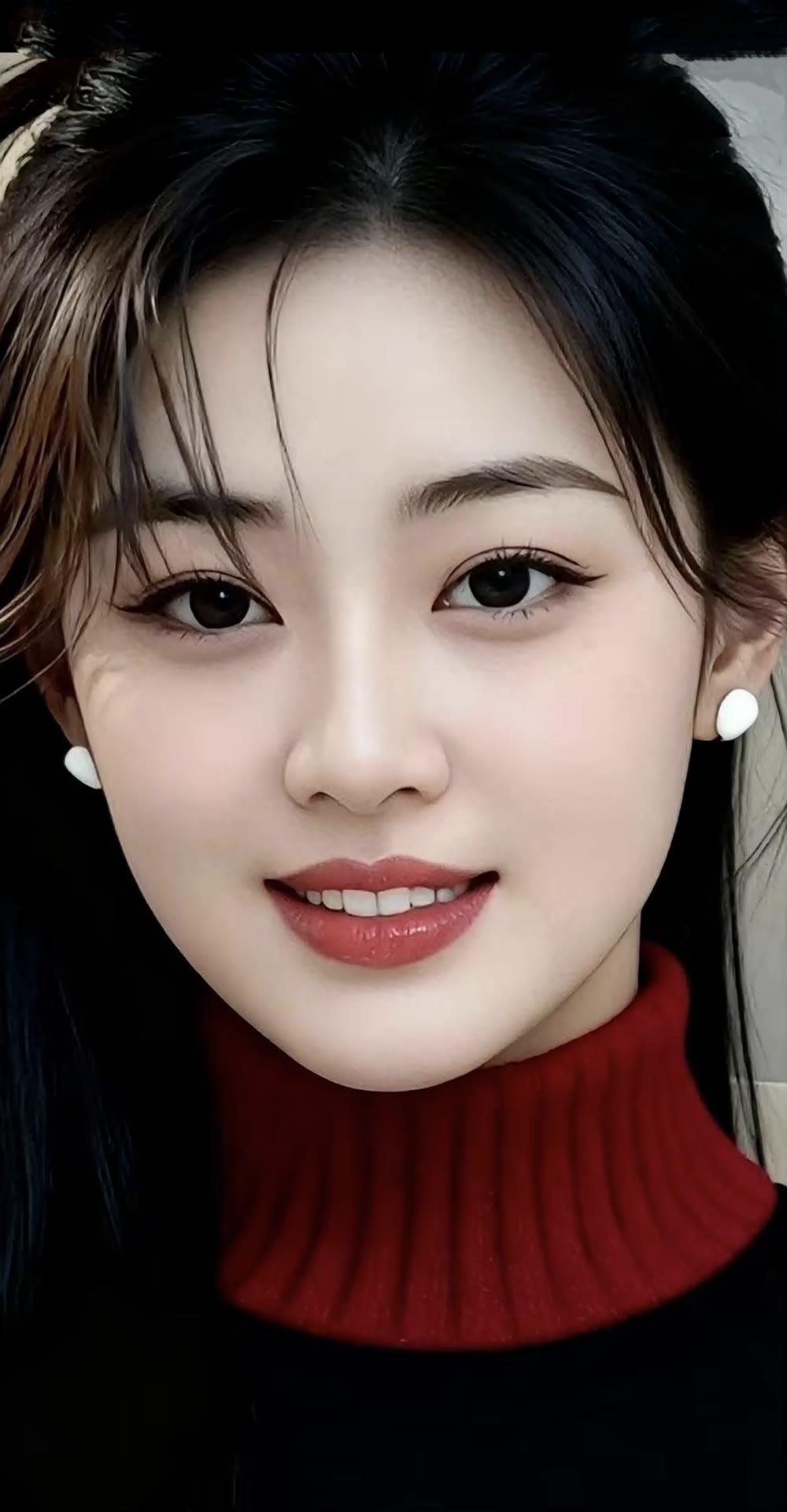 甜美笑容,红衣少女,珍珠耳环,元气满满!😊✨