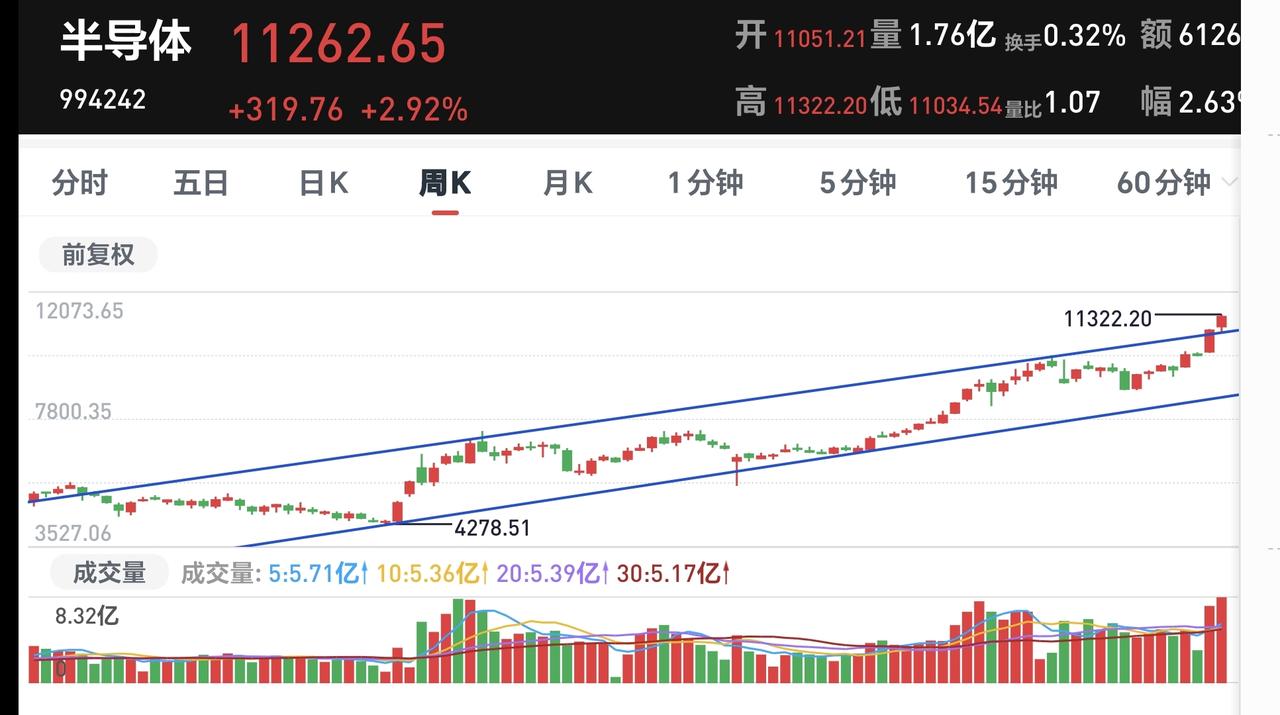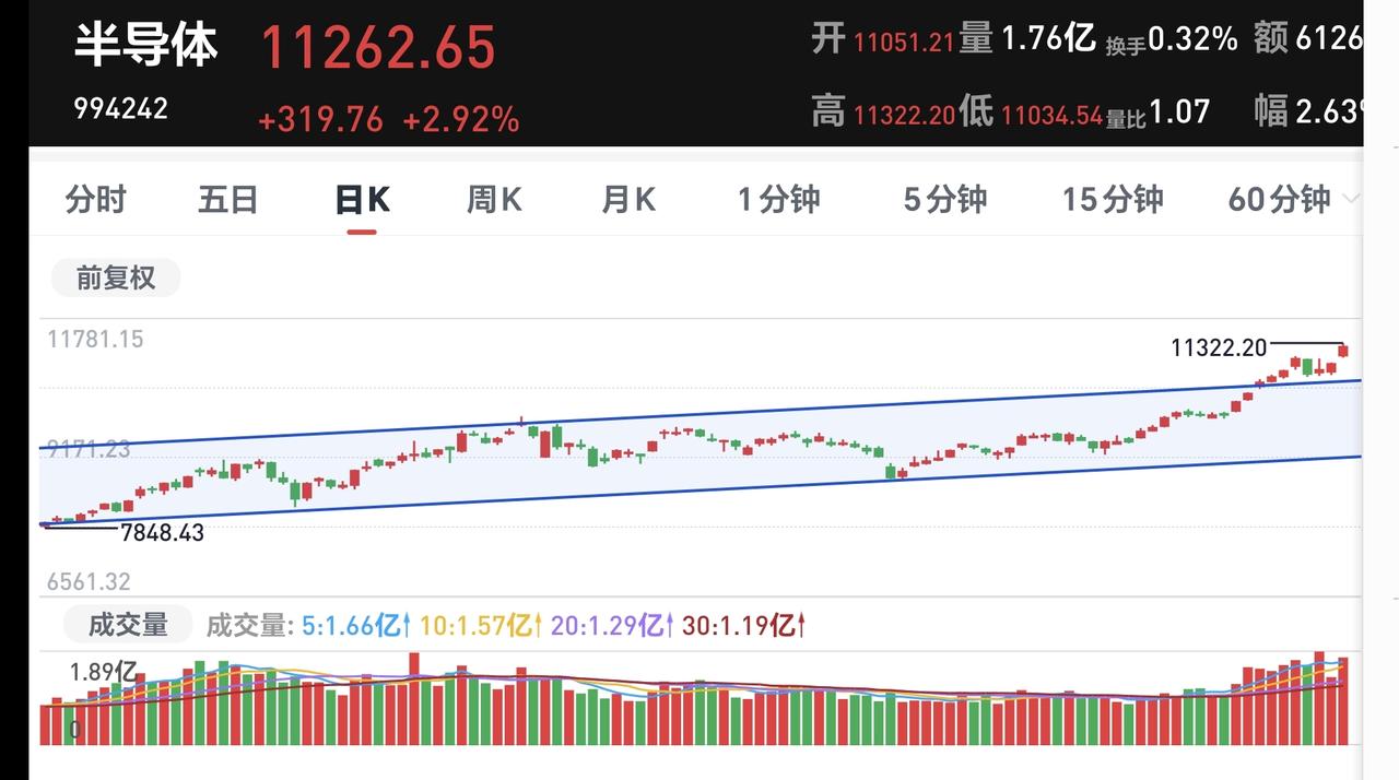 基金:半导体板块应该怎么办 上周基金收益756元,收益率0.04%,跑赢了全国81.55%的财友,也跑赢了上证指数0.45%的下跌幅度。 上周5个交易日当中,两亏三赢,两个交易日亏损,三个交易日盈利,盈利金额最大的是星期一,亏损金额最大的是星期二。 持有的15只基金中,上周是七盈八亏,七只基金盈利,八只基金亏损,盈利金额最大的三个板块是:芯片半导体板块,先进制造板块,兴全合宜,亏损金额最大的三个板块是:医疗板块,证券板块,白酒板块。 持有的芯片半导体板块基金银河,上周的盈利金额最大,盈利了4483元,这个板块上周五上涨了2.99%,是连续第三个交易日上涨,持有人数在所有板块中排名第2位,说明这个板块当中的散户非常多,这个板块上周五加仓人数排行榜见下面的截图7,持有人数排行榜见下面的截图8,加仓人数最多的是广发半导体材料设备,持有人数最多的是东方人工智能主题。 我们来看一下下面的截图9,这是半导体板块日K线图,从图中可以看出,我画了两条倾斜向上的斜线,这是半导体板块日线级别上涨通道,前段时间上涨突破了这个上涨通道的上轨,显示这个板块已经进入了加速上涨的状态,持有的人可以继续持有,除非跌破这个上涨通道的下轨,才可以考虑要不要止盈出来观望。 我们来看一下下面的记图10,这是半导体板块周K线图,从图中可以看出,我画了两条倾斜向上的斜线,这是半导体板块周线级别上涨通道,上上周上涨突破了这个上涨通道的上轨,上周在继续上涨,显示半导体周线级别也处于加速上涨状态,中长线持有的人可以继续持有,除非跌破周线级别上涨通道的下轨,才可以考虑要不要止盈出来观望。 周末的消息面很多,下周的市场震荡幅度会加大,主要原因是散户的做多热情不减,有关方面想要慢牛的决心不变,只要存在分歧,就会产生震荡,存在的分歧越大,震荡的幅度越大,方向一致的时候就会产生单边的上涨和下跌方向,不一致的时候就会产生上下震荡,下周我们观察4047点附近能不能止跌企稳,如果这里支撑不住,下一个点位就是观察4003点,极限支撑位置是3959点,震荡调整的时候还是要观察成交量,成交量是骗不了人的,成交量是资金的态度,星期一的时候观察成交量会不会萎缩?成交量萎缩的幅度越大,继续调整的概率越大,调整下跌的空间越大。 谢谢大家的评论、点赞和支持。 我每天都会分享我的观点,我的观点只代表我个人的看法,不能作为你操作的依据,据此操作后果自负。