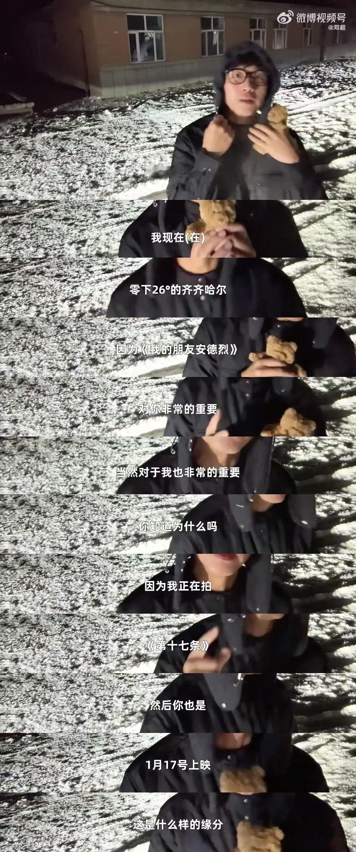 宣传绞尽脑汁不如邓超灵机一动 宣传界的“灵机一动”天花板非邓超莫属!冰天雪地为董子健新片打call,还联动同日上映的《第十七条》,这波双向宣传必须支持,1月17号冲就对了!