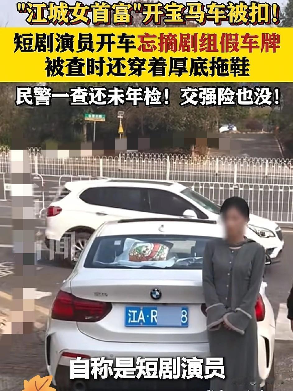 尴尬了!长沙,警察在路上执勤时,发现一辆很可疑的白色宝马车,于是将其拦停在路边检查,结果走近一警察叔叔都笑了,"江A"是哪里的车牌? 车主是位女演员,慌忙解释是剧组拍戏贴的道具车牌,拍完忙忘了撕,稀里糊涂开了好几天竟全然不知。 更关键的是车子年检过期近半年,交强险也断缴数月,三项违法直接撞满,车被暂扣,罚款扣分一个不落。 虽说纯属无心之失,但规矩就是规矩,违法就得认罚。这事儿根本是车主和剧组的双重疏忽,剧组收尾不清理,车主取车不检查,小马虎酿出大麻烦! 开车无小事,上车前绕车检查、按时办年检缴保险,真的别偷懒!