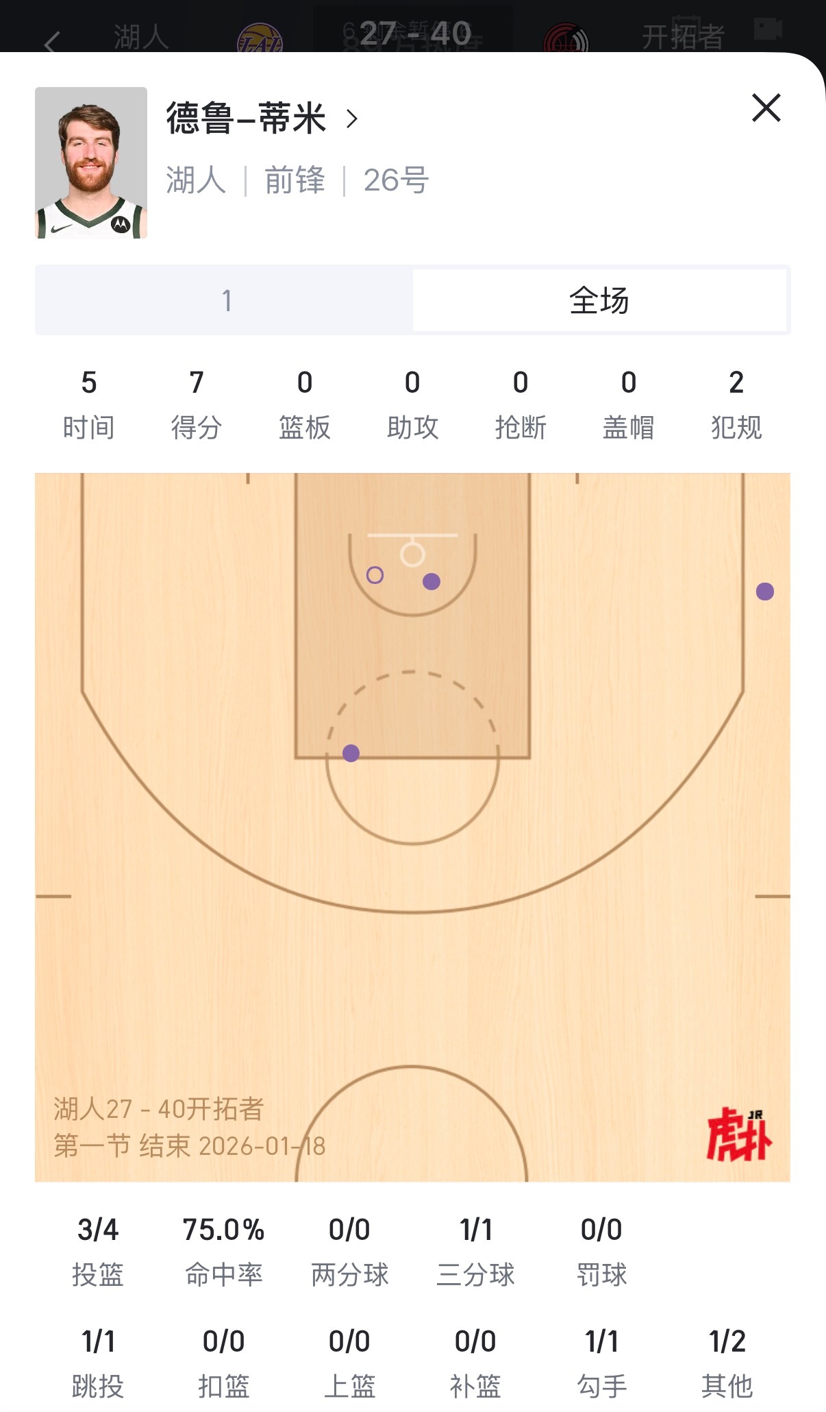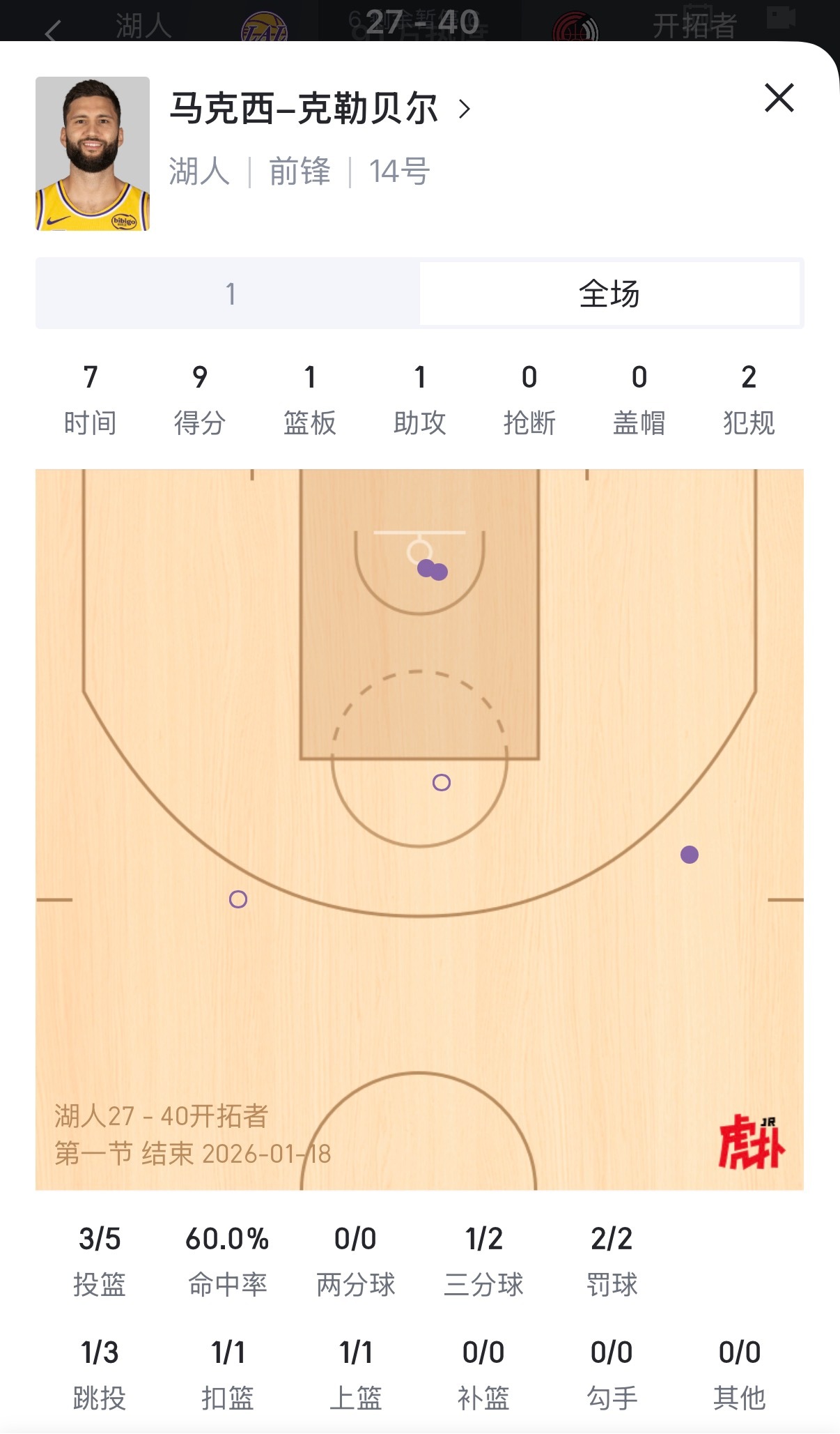 首节湖人两大奇兵合砍16分,没有这俩其他人一共拿了11分湖人vs开拓者