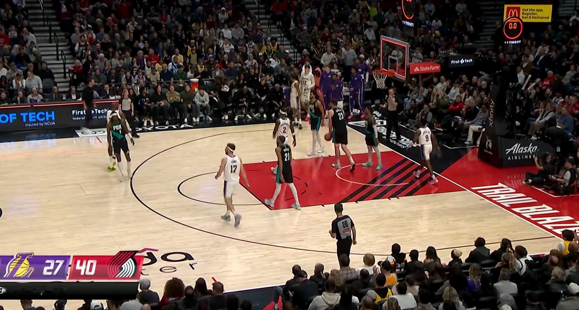 首节湖人27:40落后开拓者13分,有什么想说的?开拓者首节22次罚球,湖人3次开拓者首节16个篮板球,湖人3个湖人vs开拓者