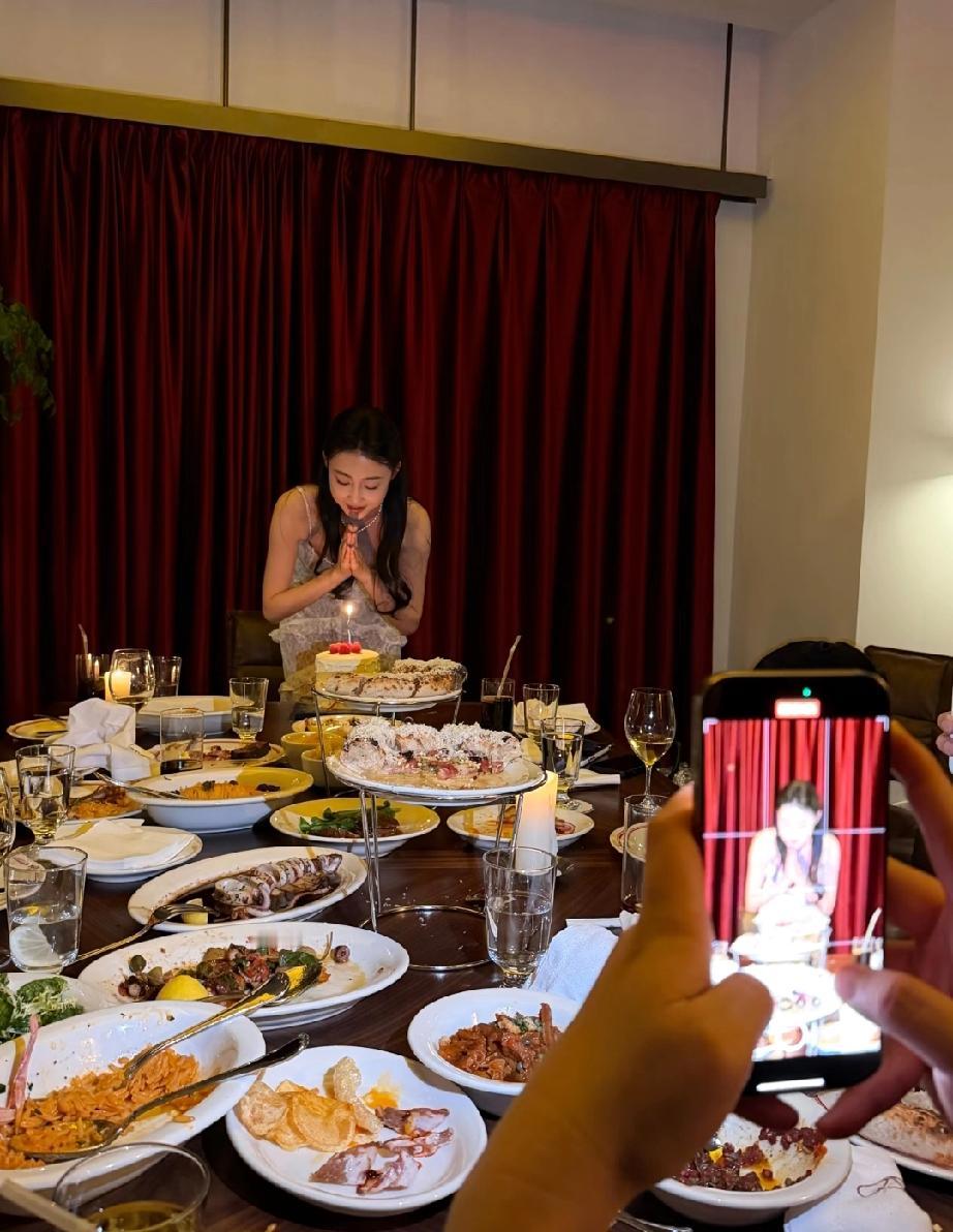 潘玮柏老婆生日晒照,说起来她也 36 岁了,还生过孩子,怎么保养得这么有少女感,生日宴上穿着一身白色吊带纱裙,又纯又欲。 潘玮柏还为老婆请了许多朋友一起庆生,他没有出镜,但是给老婆拍照的小胖手出镜了,很会给老婆拍照。 都说他俩是男强女弱,但看着是潘玮柏被宣云吃得死死的了。