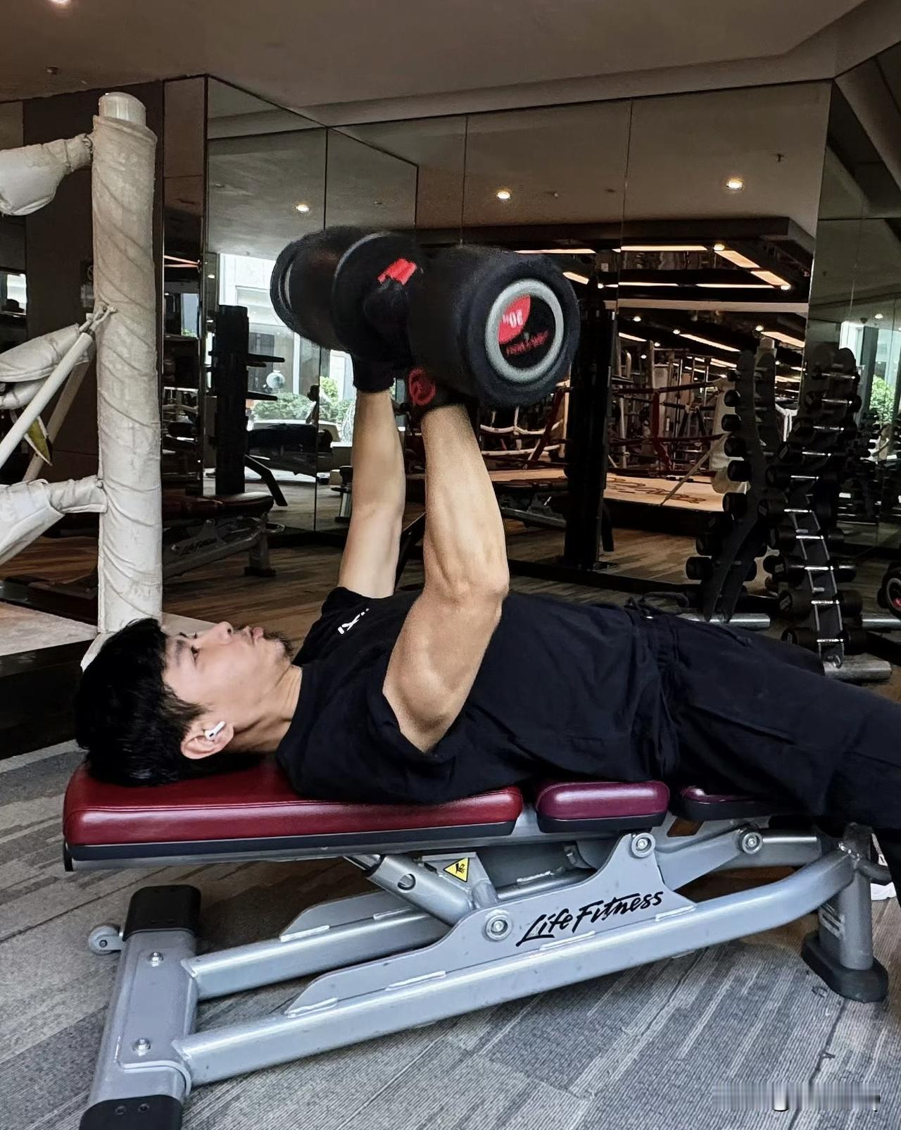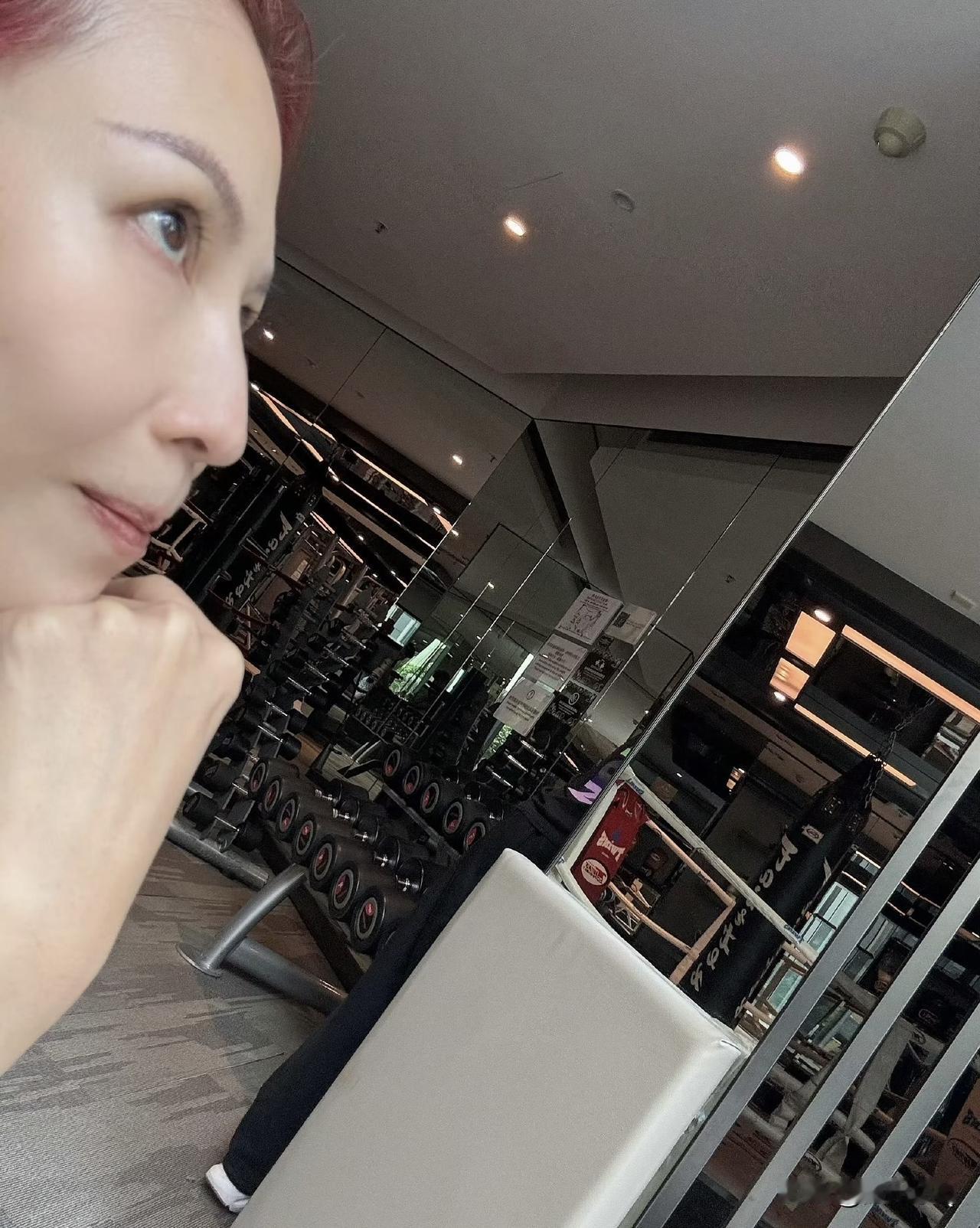 又吃了一波狗粮,张晋健身房健身,老婆蔡少芬相伴左右。夫唱妇随,两人一起练肌肉也挺好。