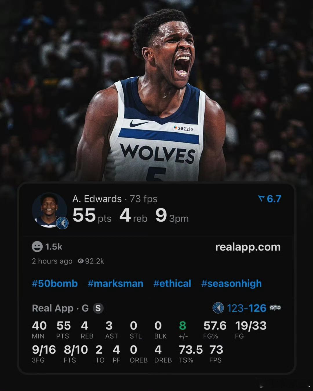 文班最后有点情绪上头,但尚帕尼两罚不进之后文班的前板还是锁定了胜局!爱德华兹55分生涯之夜成为空砍,在戈贝尔缺阵、里德伤退、狼最多落后25分的这一战,复出归来的爱德华兹杀红了眼,第三节13分,末节26分,靠一己之力抡出了悬念。但最后时刻文班重新登场,连续中远距离跳投对飙华子,加上罚球连拿7分,回头封盖贝兰热上篮,凯尔登再钉进一记制胜三分,马刺守住了主场!森林狼vs马刺NBA