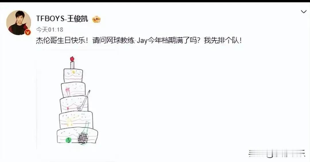 一边周董庆祝结婚11周年,一边小凯为偶像庆生也满了11年。这日子选得,跟商量好似的。 天王这边,晒照发糖,从古堡婚礼到五口之家,稳稳的幸福。粉丝那边,手绘蛋糕坚持了十一载,在AI画图满天飞的今天,这笔画的真心,比啥都贵。 娱乐圈变得快,但总有人用“年”做单位,守着点东西。 一个是守着小家,一个是守着青春的偶像。时间哗哗地走,这种“不赶时间”的劲儿,反而成了最潮的。 周杰伦发文庆祝与昆凌结婚11周年 王俊凯连续11年给周杰伦庆生 周杰伦