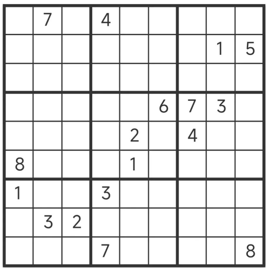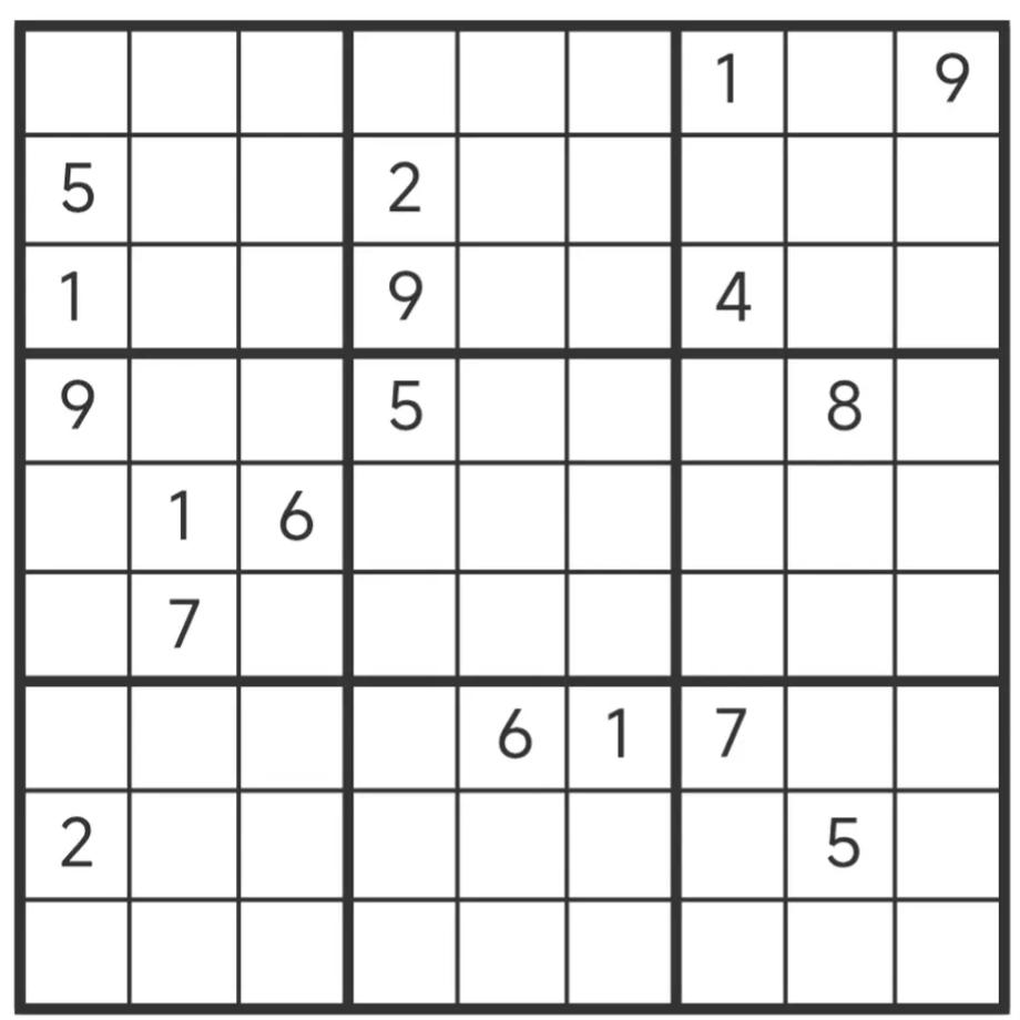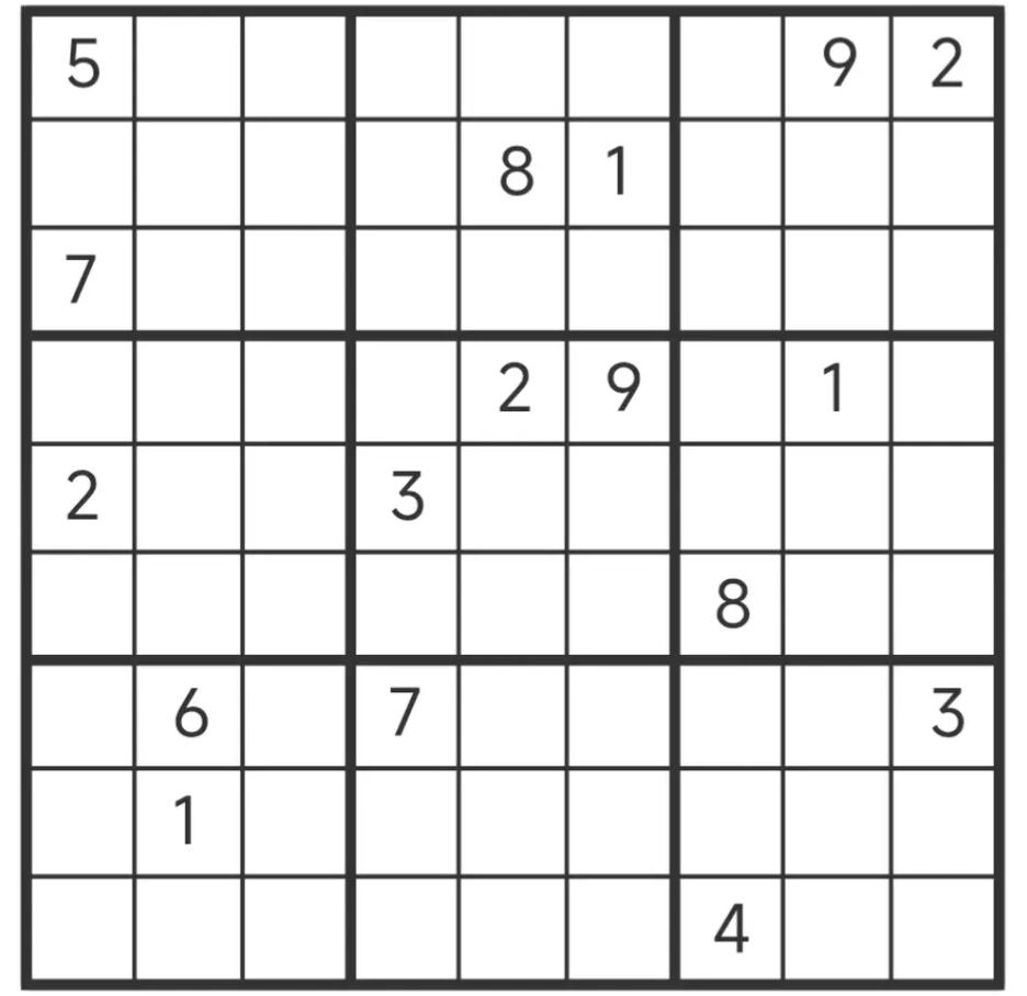 今天继续给出大家出三道比较难的数独题。 第1道题,可以用推理法直接推理出来,只要