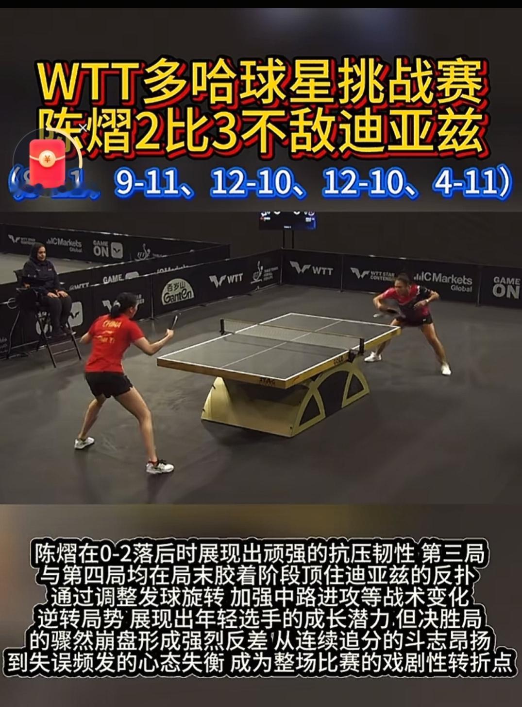 陈熠一定是尽力了,要说缺点什么,那一定是天赋。天赋这东西,就是老天赏饭吃的人才有的。国乒认为打球天赋异禀的人,只有两个,一个樊振东,一个孙颖莎。要说努力谁不努力?陈熠也绝对是付出了很多的努力了。打不赢,那也是没办法的事情,本身她赛场经验相比外协来说就少,输很正常的。 老是把她跟孙颖莎,王曼昱年少去比较,本身对她也是不公平的。她未来绝对不可能有她两的成就,年龄已经在这里了。 年少成名也就这2人,可能十年,几十年才出一个。所以,对小将多些鼓励吧。