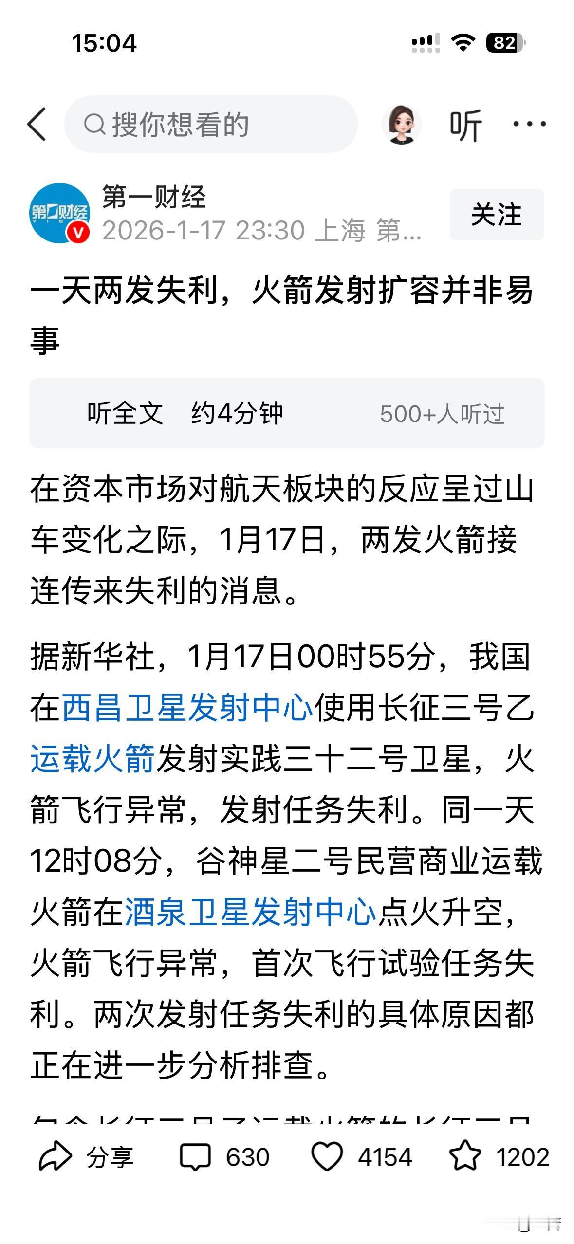 明天周一开盘,股市里的“商业航天”板块,大概率要挨一顿揍,低开、大跌跑不掉。 为啥?就因为昨天一天摔了两枚火箭,市场信心碎了一地。这就好比坐飞机,一天内两架掉下来,谁还敢买票?股民肯定先跑为敬,生怕被套在山顶上。 但这事儿得分两头看:对于那些光靠吹牛、没实际业绩的“概念股”,这叫“现原形”,估计得趴好一阵子。可对于真正造卫星、搞核心配套的“国家队”,这叫“倒车接人”——航天是国家定下的大事,不会因为摔两次就停,等这波恐慌过去,修复起来也快。 所以,明天早盘别急着抄底,小心飞刀伤手;要是手里有硬货,跌得狠了,反而是捡便宜的机会。