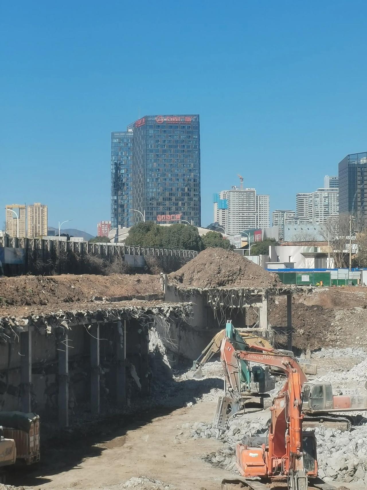 日新中路与前兴路交叉口这个项目,复地集团最先拿的地,建好了地下三层,地上已经一层框架了,最后还是没有逃脱烂尾的命。在润城第四大道旁边,以前规划是造一幢写字楼与两幢公寓楼里,应该是规划及开发商问题。 现在正在拆除,全是钢筋钢架,拆除也挺慢的,里面有一个人看守的,他说过年前完成。新规划已经出来了是造住宅楼,不知道是花落谁家,会不会是云南建投,或者是邦泰,边上的邦泰的锦和项目已经在做收尾工作了。希望以后顺利建好。以上仅供参考,属个人意见!