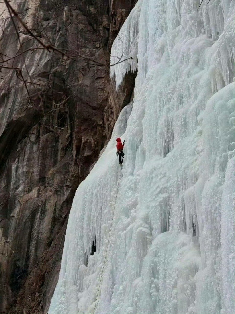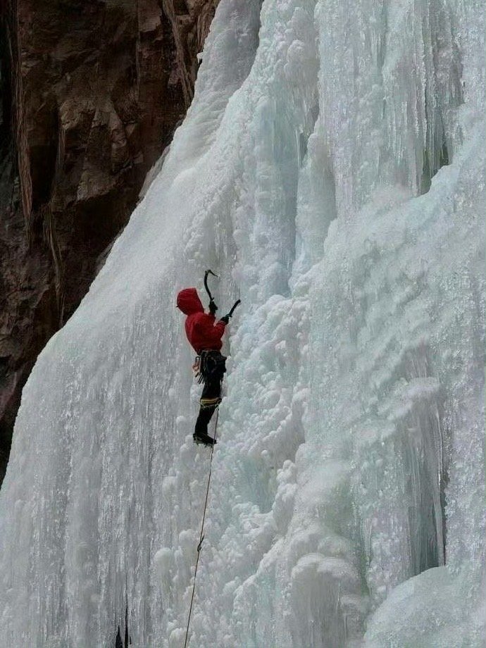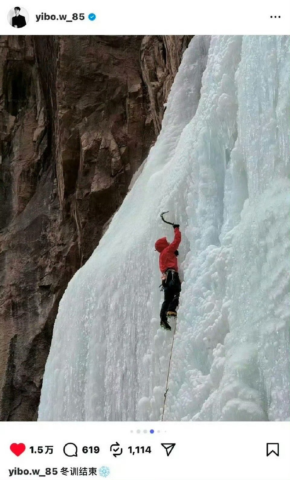 王一博晒攀冰照王一博冬训攀爽了冬训圆满收官。冰瀑之上的红色身影利落飒爽,不断挑战新领域的冲劲儿,格外亮眼!