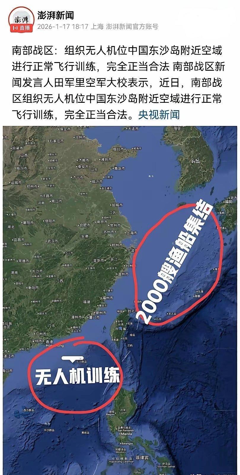 台海东西夹击,统一势不可挡!台海统一的进程似乎已进入倒计时。近期,台湾海峡东西两侧同步展开的演练,释放出极具战略深意的信号。西侧: 南部战区在东沙岛附近空域组织无人机飞行训练。作为台湾海峡的西部门户,此处的空中力量部署,构建了严密的空中监控与封锁网。东侧:据《纽约时报》报道称, 近2000艘渔船在东海海域(台海东入口)约320公里范围内集结。这不仅是规模的展示,更是对海上通道实施有效封控的实战预演。这一“西空东海”的联动布局,形成了对台湾海峡入口的双重封锁,清晰地勾勒出统一近在眼前的现实图景。专栏 · 中美博弈|俄美博弈|中俄联手|寰球动态