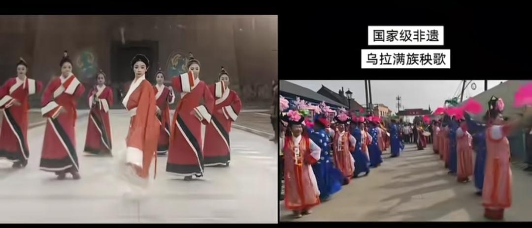 萝卜青菜,各有所爱。 (图一,图二)早知邯郸学步,今日方知邯郸舞,果然美轮美奂,妙不可言,难怪战国时,燕国寿陵少年,到赵国邯郸,要学当地人走路和跳舞,确实美不胜收。 (图三,图四)乌拉满族秧歌,女子穿戴旗服、旗头、旗鞋,男子穿戴袍衣、靴鞋、官帽等,乌拉满族秧歌是满族传统歌舞与萨满祭礼歌舞的结合与延续。 每个人和民族对美丑有自己的偏爱,萝卜青菜,各有所爱。