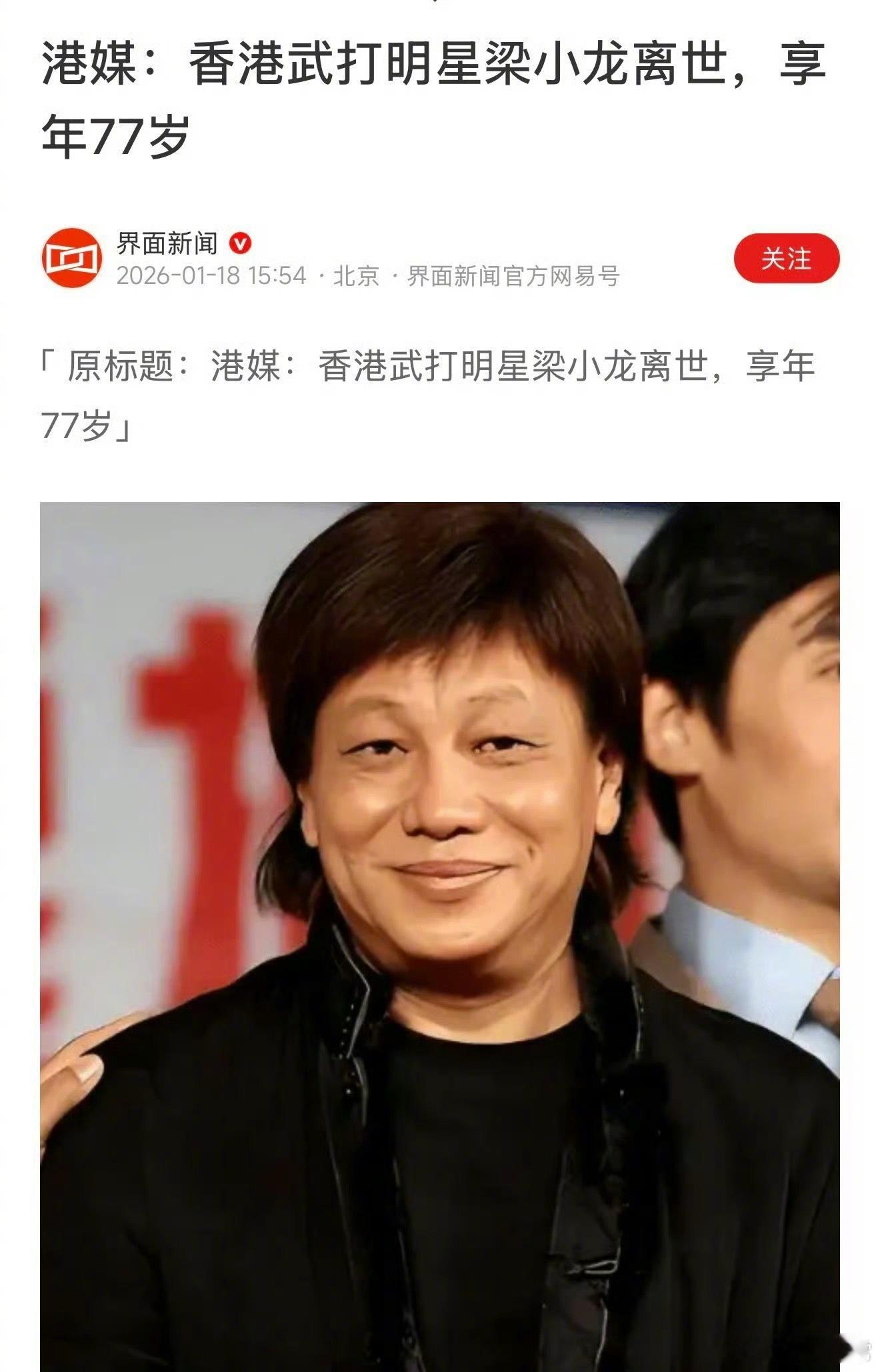 香港武打明星梁小龙去世,享年77岁。经典角色有《功夫》火云邪神和《大侠霍元甲》陈真等梁小龙去世