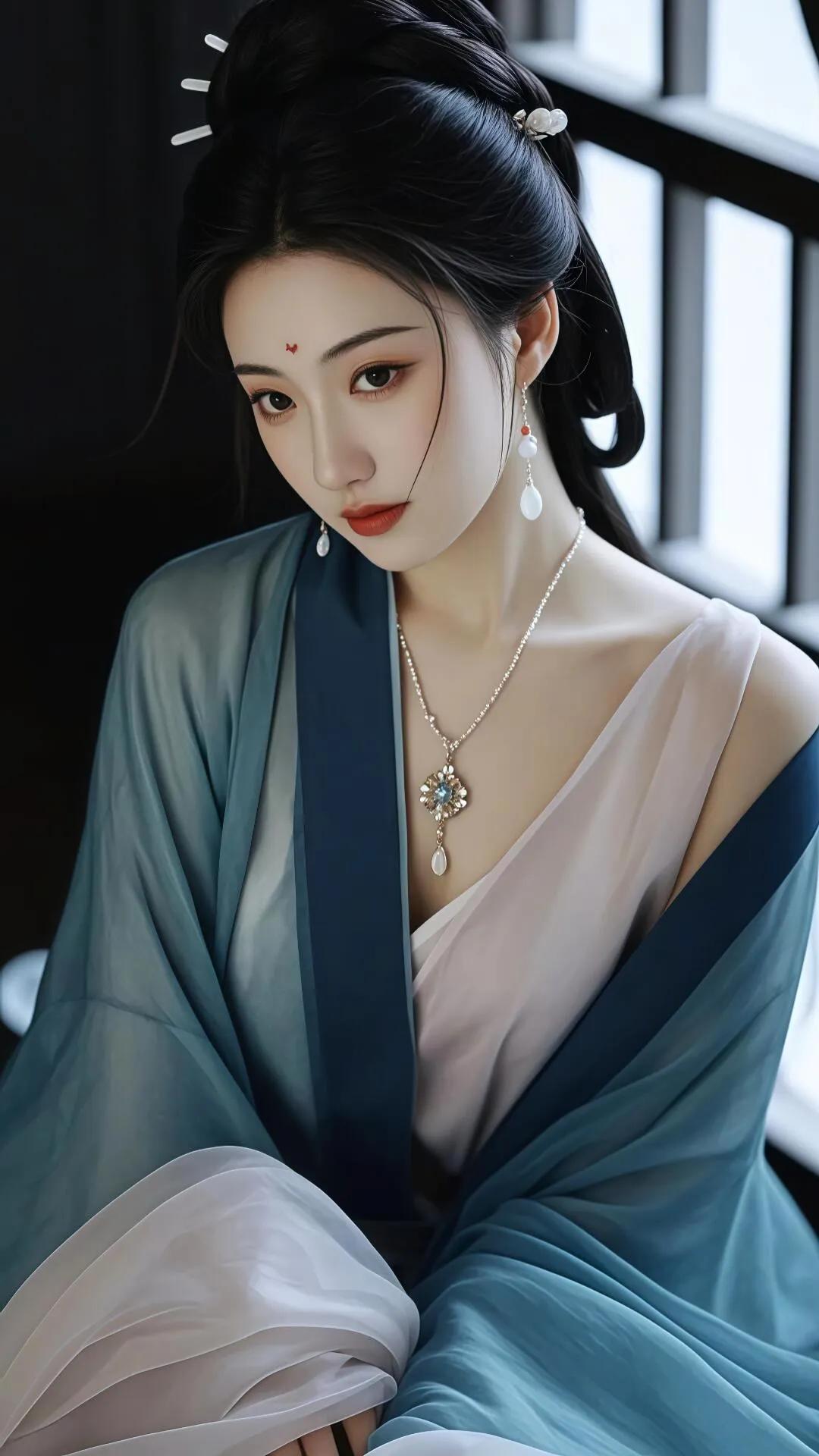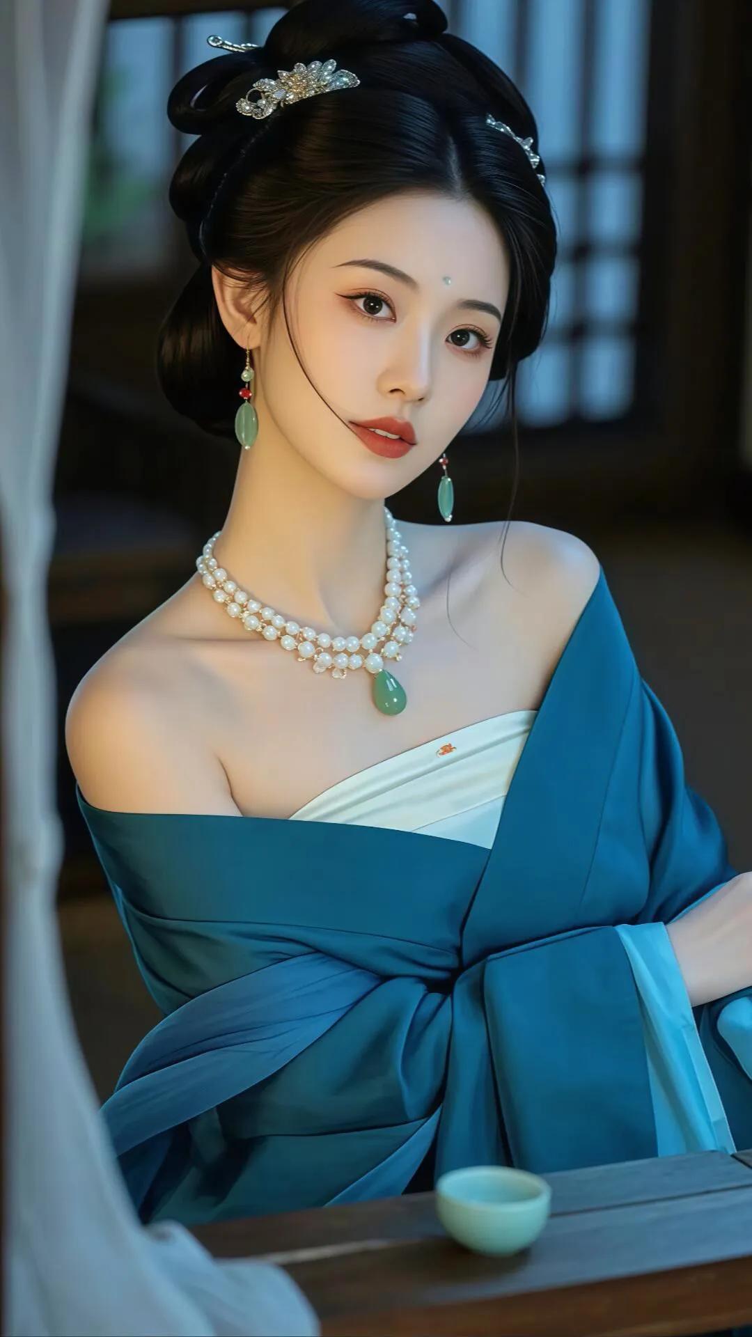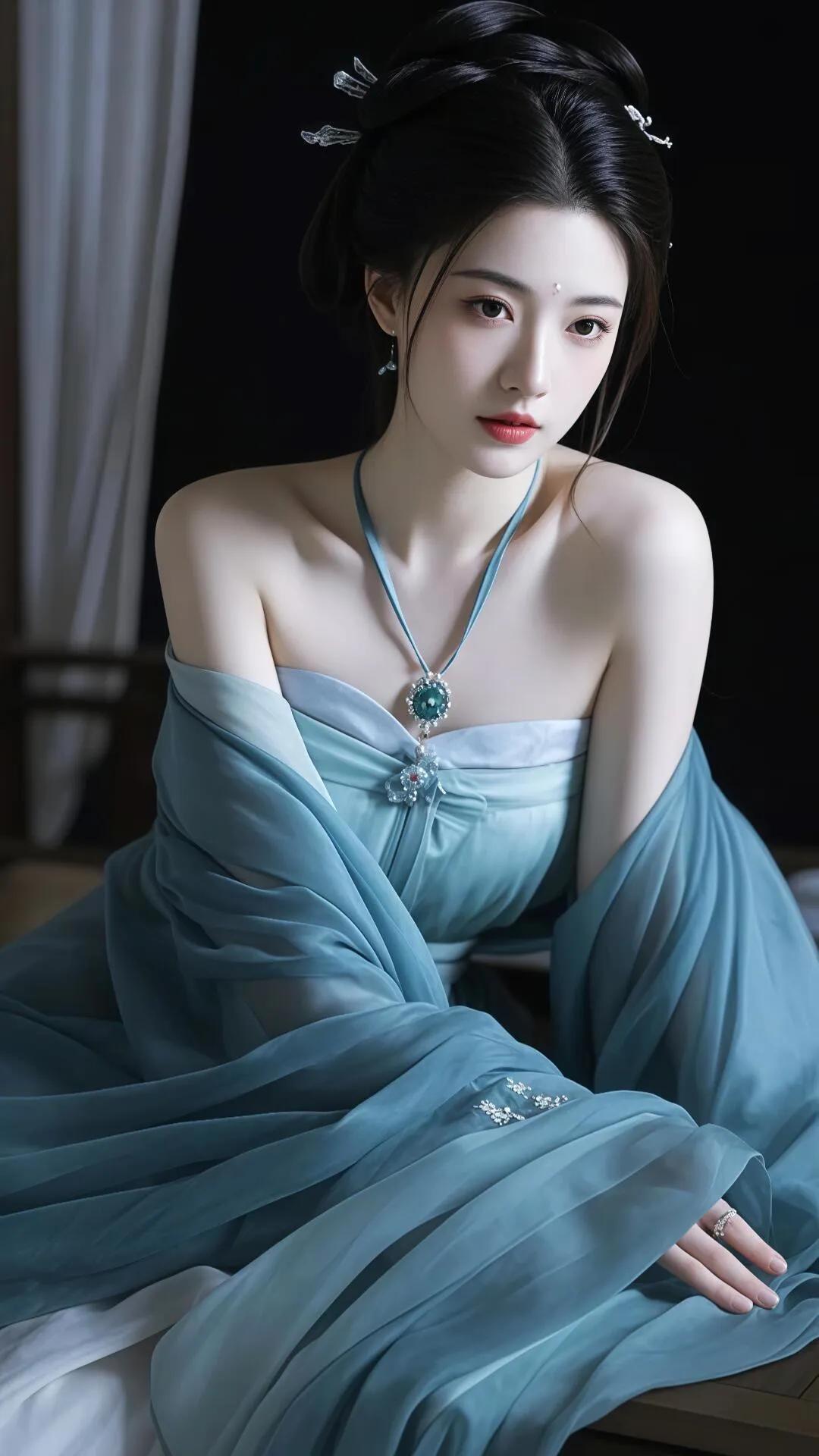 优雅蓝裙,闪耀珠宝,红唇诱惑,尽显女性魅力!💄✨👗