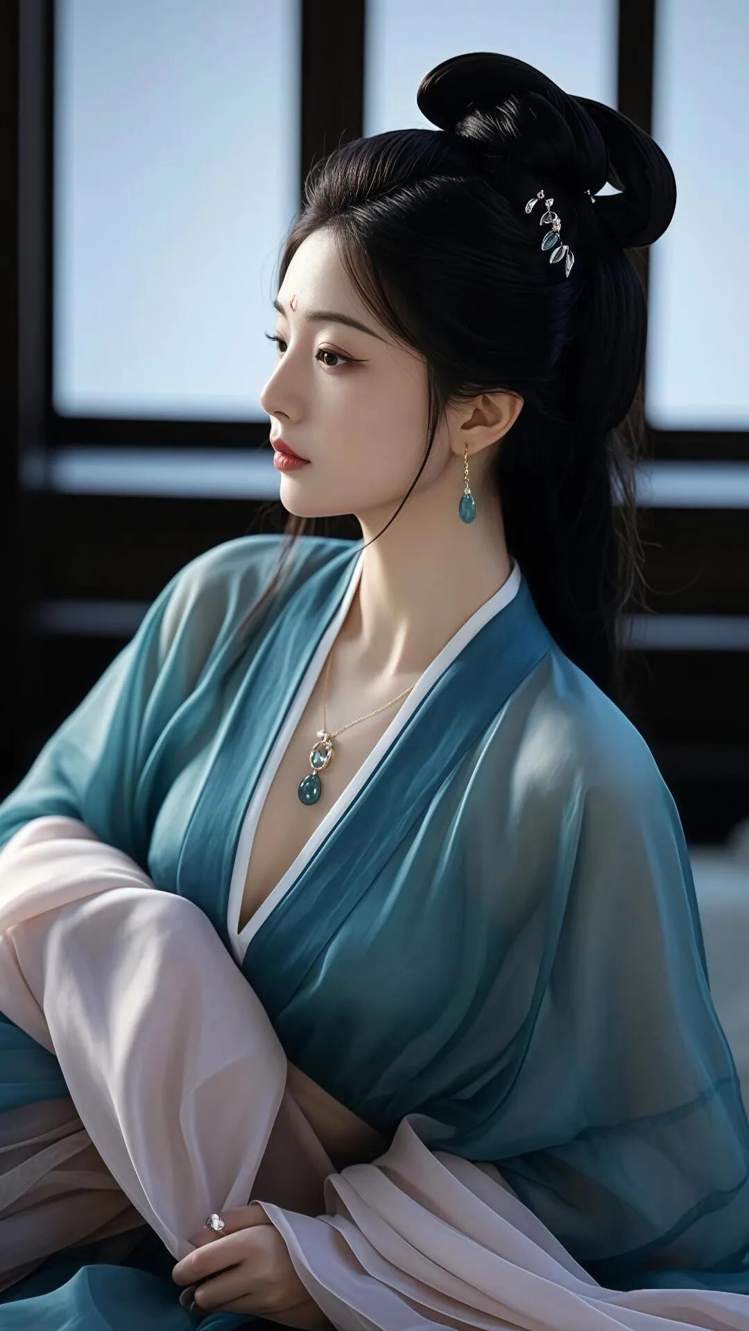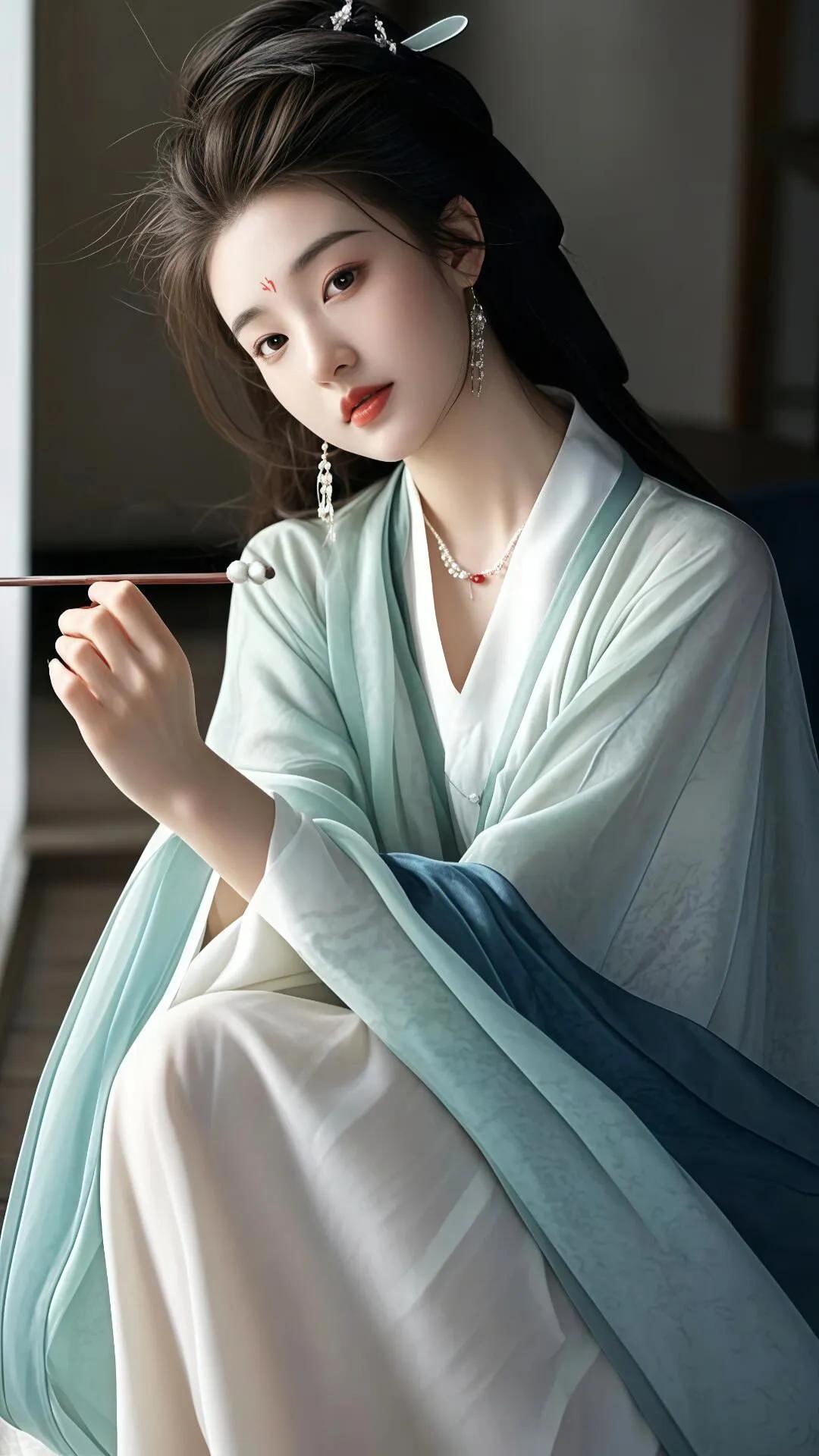 古典美人,青丝如瀑,玉佩轻摇,韵味十足。