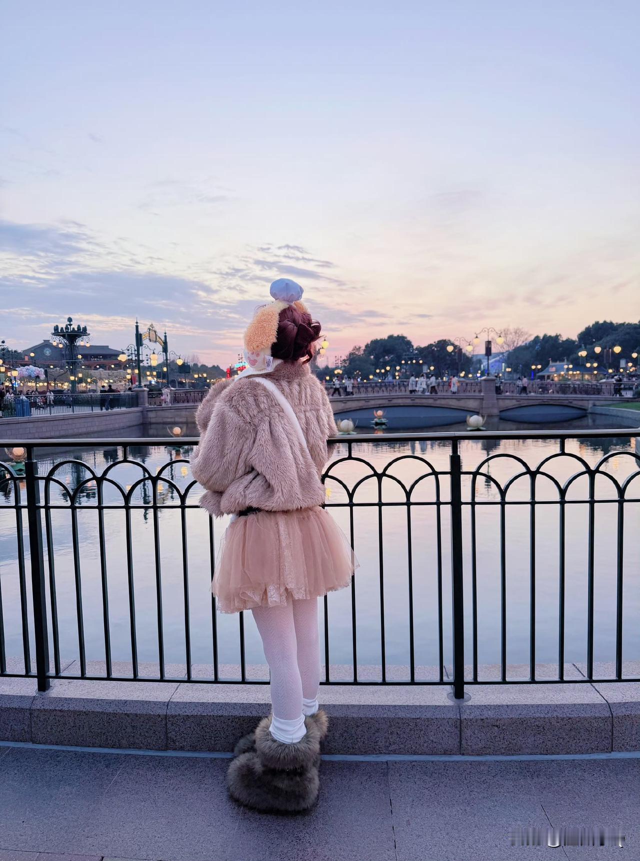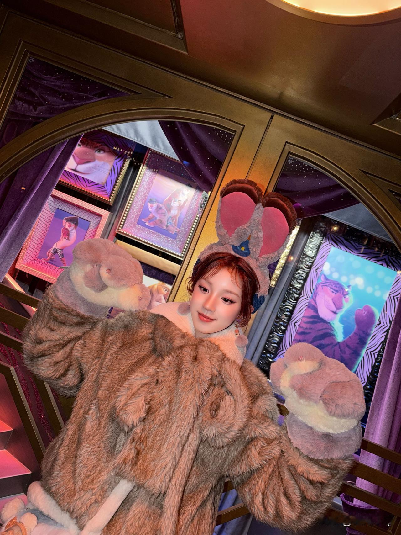 宋雨琦逛迪士尼,从头到脚穿得毛茸茸的,软乎乎的好可爱。