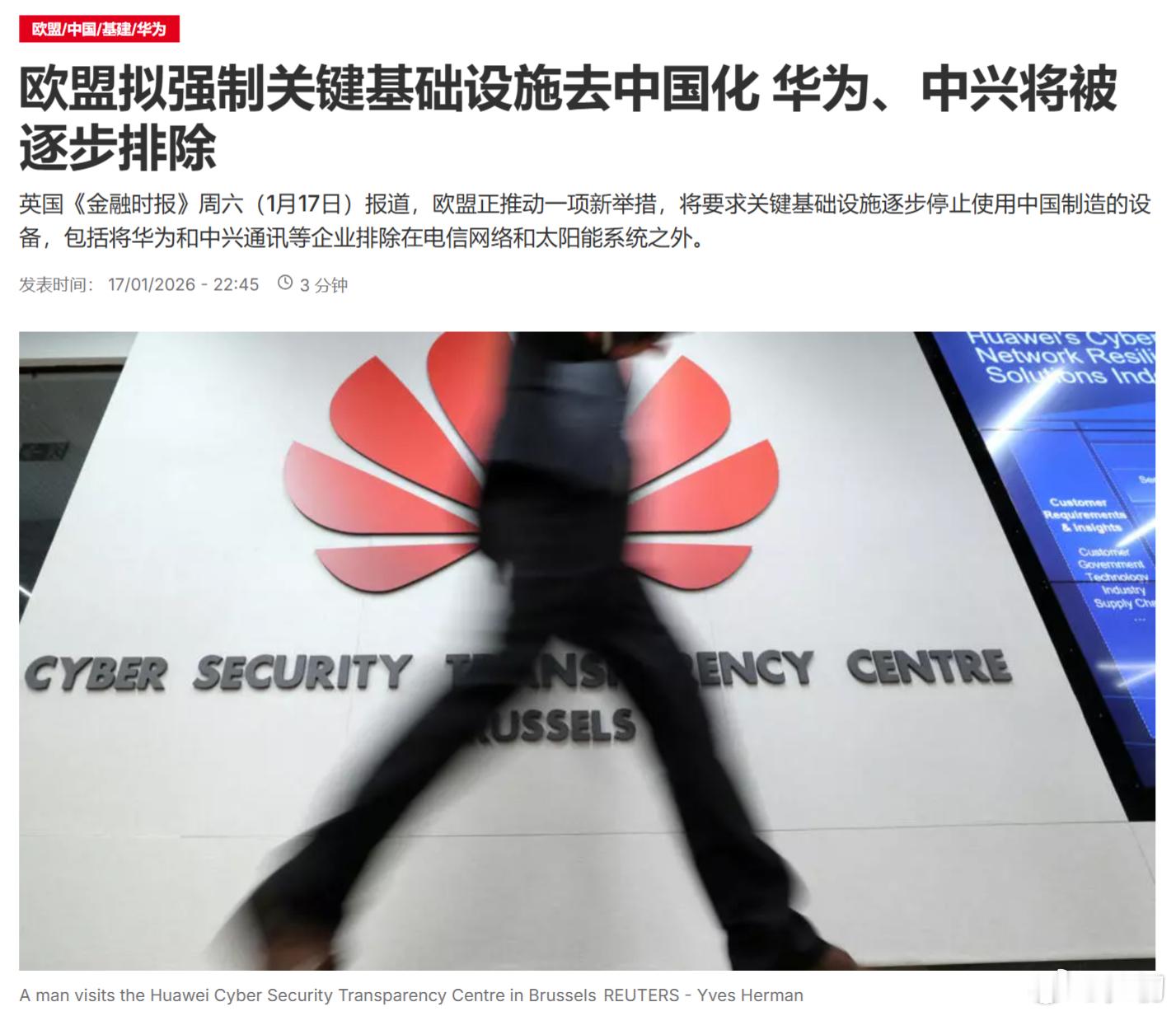《金融时报》:欧盟拟强制关键基础设施去中国化,华为、中兴将被逐步排除。中兴这么乖,2018年已经乖乖缴纳12亿美元罚款,2025年12月据说又要被罚10亿美元,这么“遵纪守法”的企业你们也要排除?