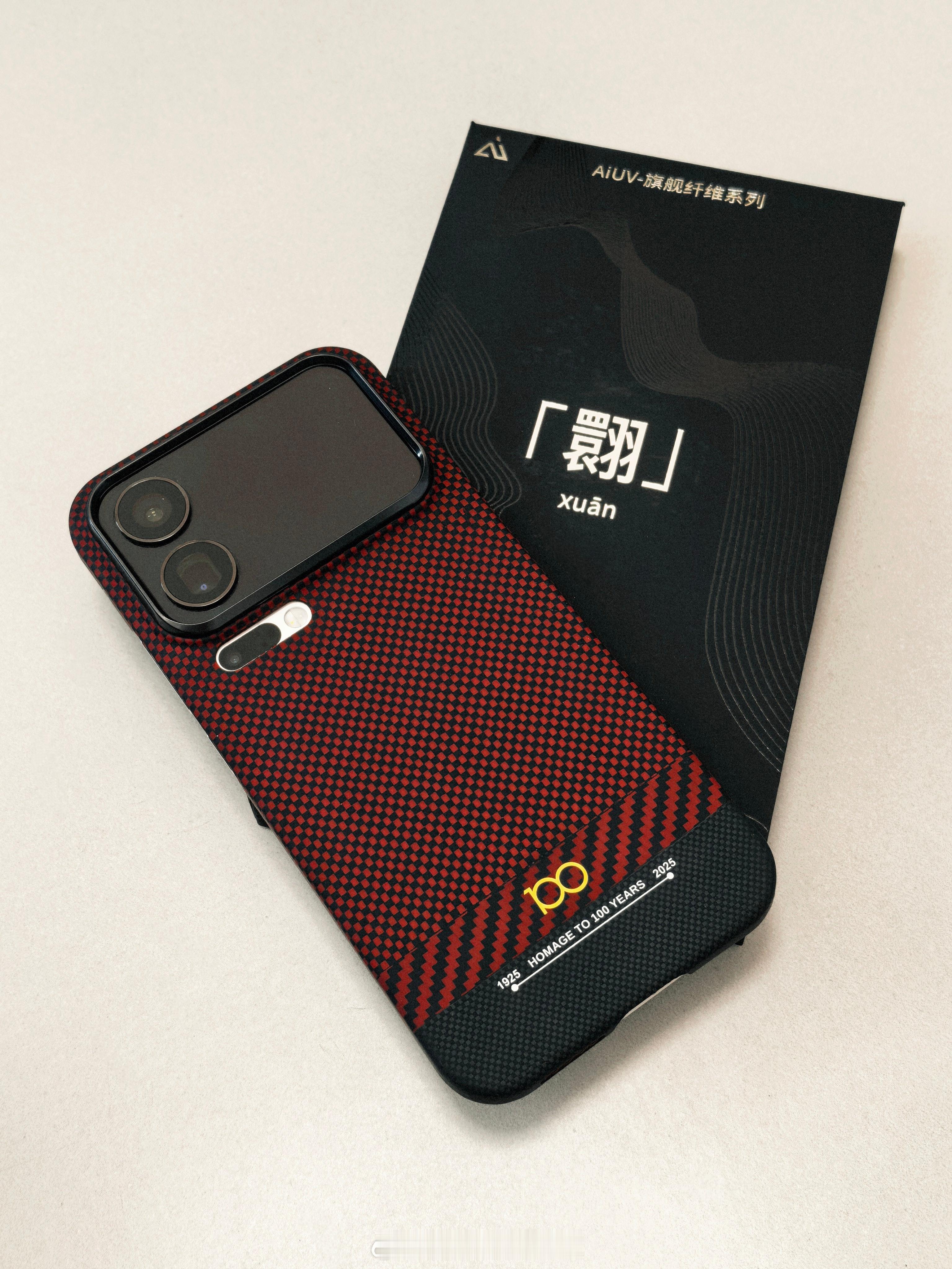 懒酱收到出品的“翾”(xuan)系列小米17 Pro Max 炽之红磁吸款手机壳。一眼高端的凯夫拉(芳纶纤维)材质,能保持超薄、超轻的同时依然支持磁吸与无线充电。采用「提花斜纹+棋盘」双纹理设计,辅以多色拼搭,印有100周年icon致敬百年经典。这是一款质感与设计都在线的年度旗舰单品。不知道大家喜欢吗?