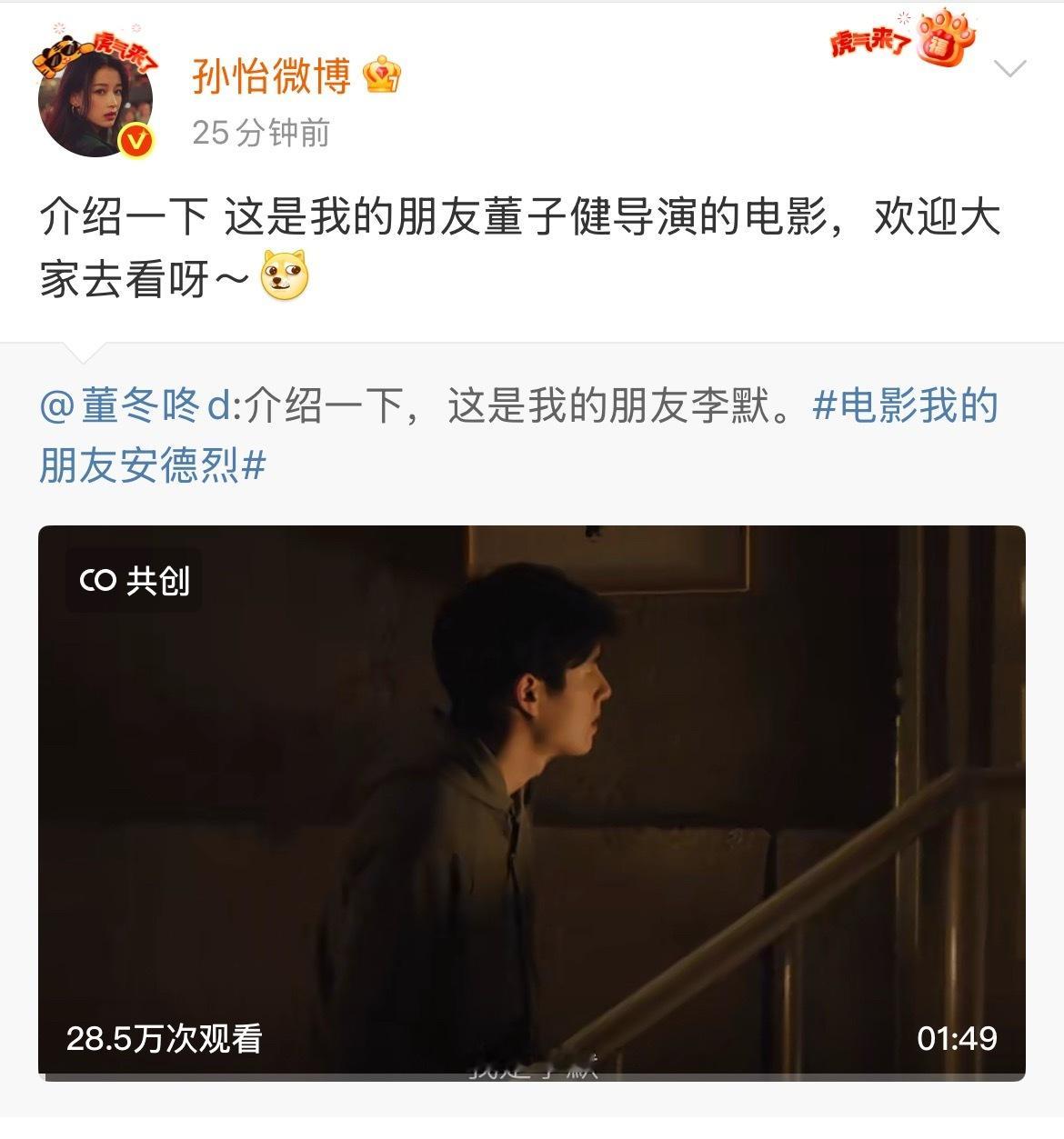 omg 孙怡宣传董子健电影:“我的朋友董子健”董子健回复孙怡:“谢谢你我的朋友”