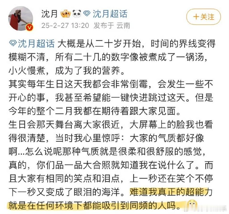 被沈月的文笔吻上了 原来文字真的有温度,她写给粉丝的告白、写给朋友的牵挂,字里行间全是柔软。没有华丽修饰,却能让人反复回味,沉醉在这份美好里。