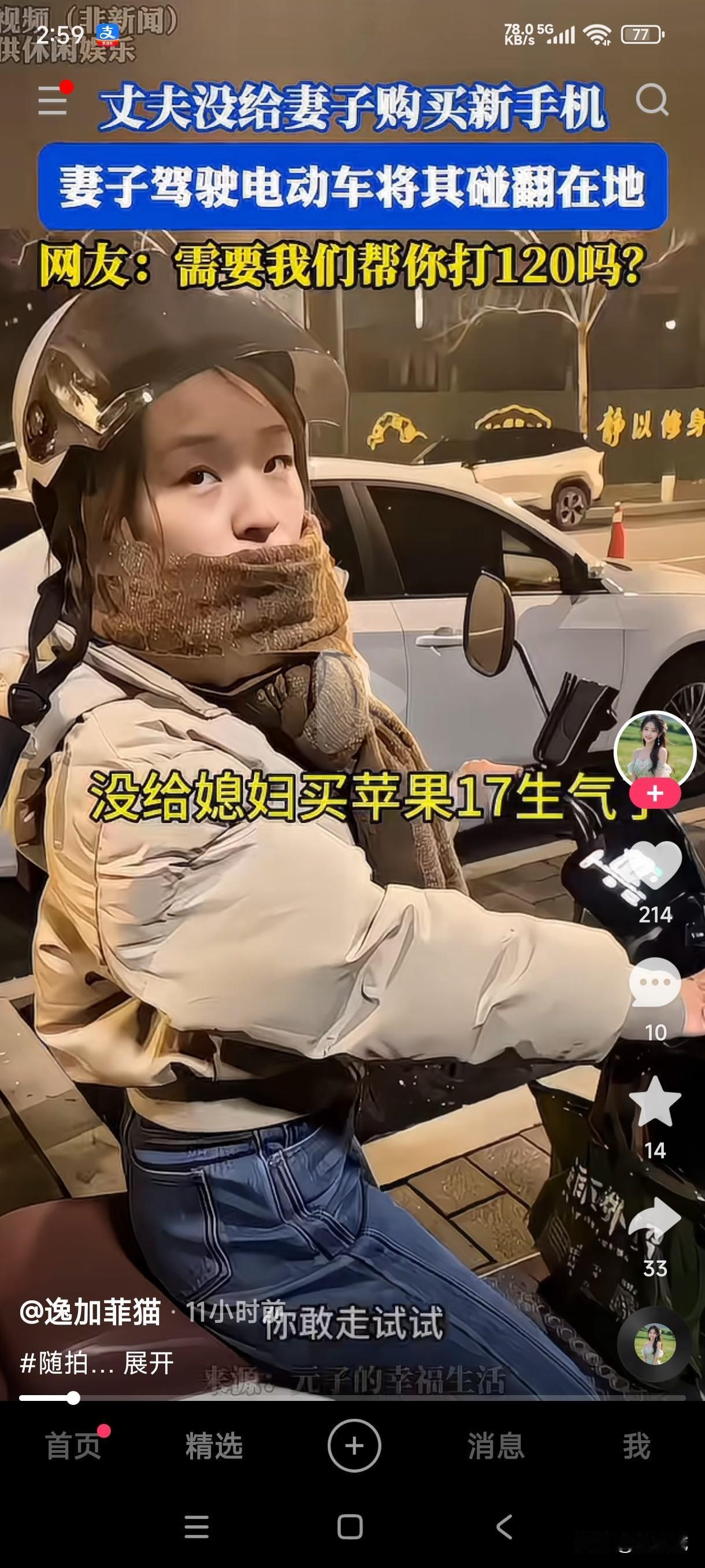 不知道这男子伤势如何? 只因为没有给妻子买苹果17她生气了,瞬间骑电动车将老公撞翻在地,这是为了手机谋杀亲夫的操作吗? 不得不说这女子还真是个狠人,就因为老公没有给她买苹果17,她居然生气骑车撞老公,这波操作看的网友们也是一愣一愣的,不知道这哥们被撞的咋样?网友们也都挺担心他的,究竟是他说话的语气太冲了,还是她敢堵媳妇不敢撞他,因为他说媳妇离开自己活不了,谁能想到她骑车走了反转又回来径直撞向老公,由此看来这人性真的赌不起不是吗?