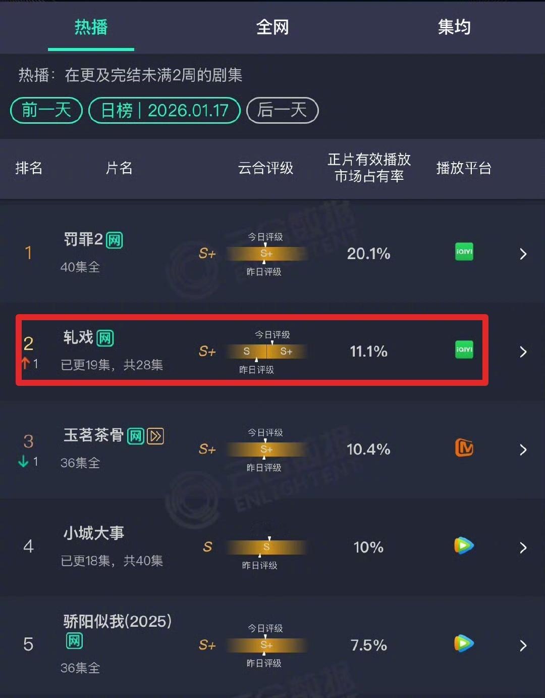 轧戏云合第二不得不说,《轧戏》真争气!云合升至第二、S+评级,黑马姿态十足。男二号代旭也迎来事业小高峰,新剧本与商务纷纷抛来橄榄枝,虽未到掀桌程度,但也算实打实有效出演了