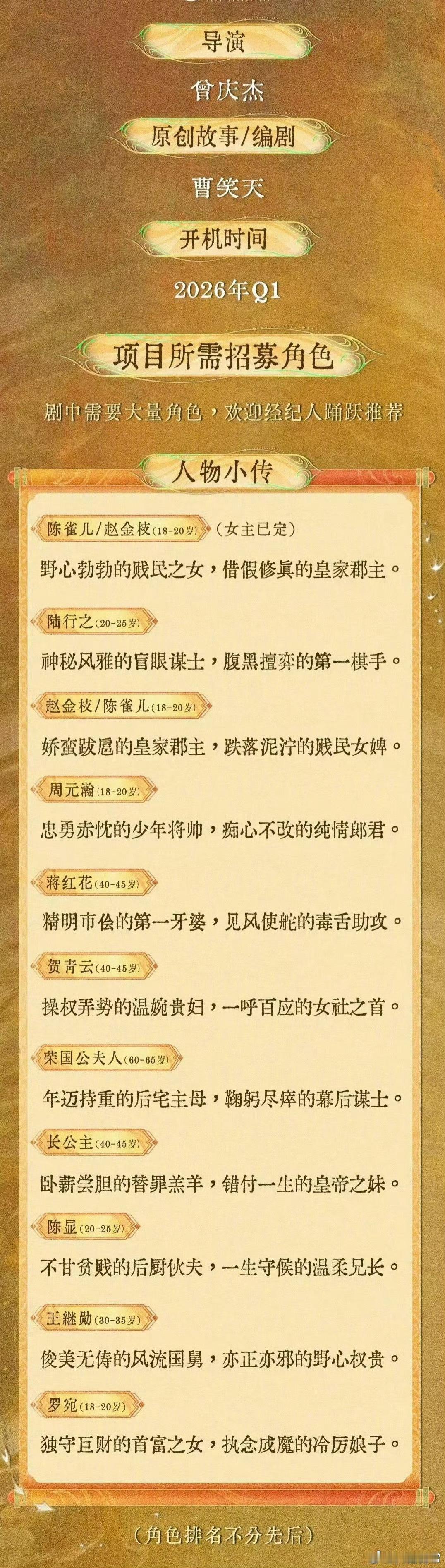 李一桐、陈星旭《金枝》人物小传和故事梗概