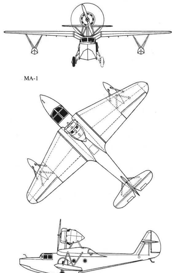毛子МА-1水陆两栖飞机 1939年首飞,翼展14.00米,机长11.82米,高2.86米,空重1400千克,最大起飞重量2200千克,装备一台330马力的МГ-31Ф发动机,最大速度210千米/小时,巡航速度196千米/小时,航程1200千米,实用升限 4300米,机组2人,可挂载4枚130千克航弹。胶佬 模型 军事 军事模型 飞机模型 飞机 水上飞机