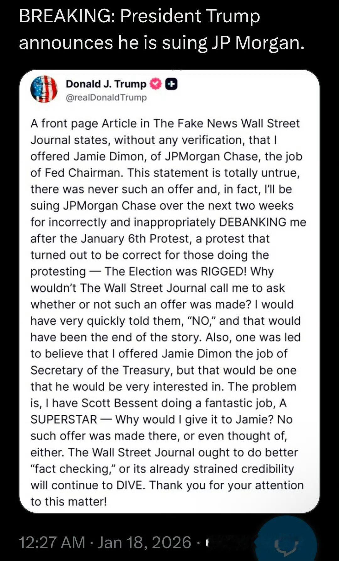 特朗普非常忙,又准备起诉摩根大通。热点现场海外新鲜事国际局势