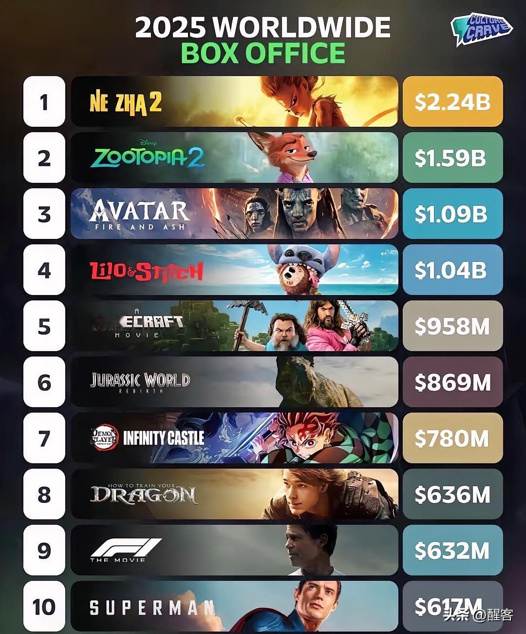 《哪吒2》夺得2025年电影全球票房冠军,更为关键的是2025年也是电影格局发生翻天地覆的一年。 2025年全球票房榜前十,这一年是动画大年,动画电影占了4部,其中《哪吒2》拿下年冠,《疯狂动物城2》拿到年亚,另外还有《星际宝贝史迪奇》和《鬼灭之刃》。 在AI时代,动画电影的崛起似乎是必然,而随着AI文生视频正在被大量采用,相信未来很快我们将看到很多不可思议的电影作品,必然充满电影人的各种奇思妙想。 恰巧很多场景和动作是真人无法实现的,AI将大大提高电影行业的发展。当然,创意、感情、思想和灵魂表现是AI永远也无法取代真人的,AI只是按照人的意愿进行创作,无论什么时候人都必须是根本。