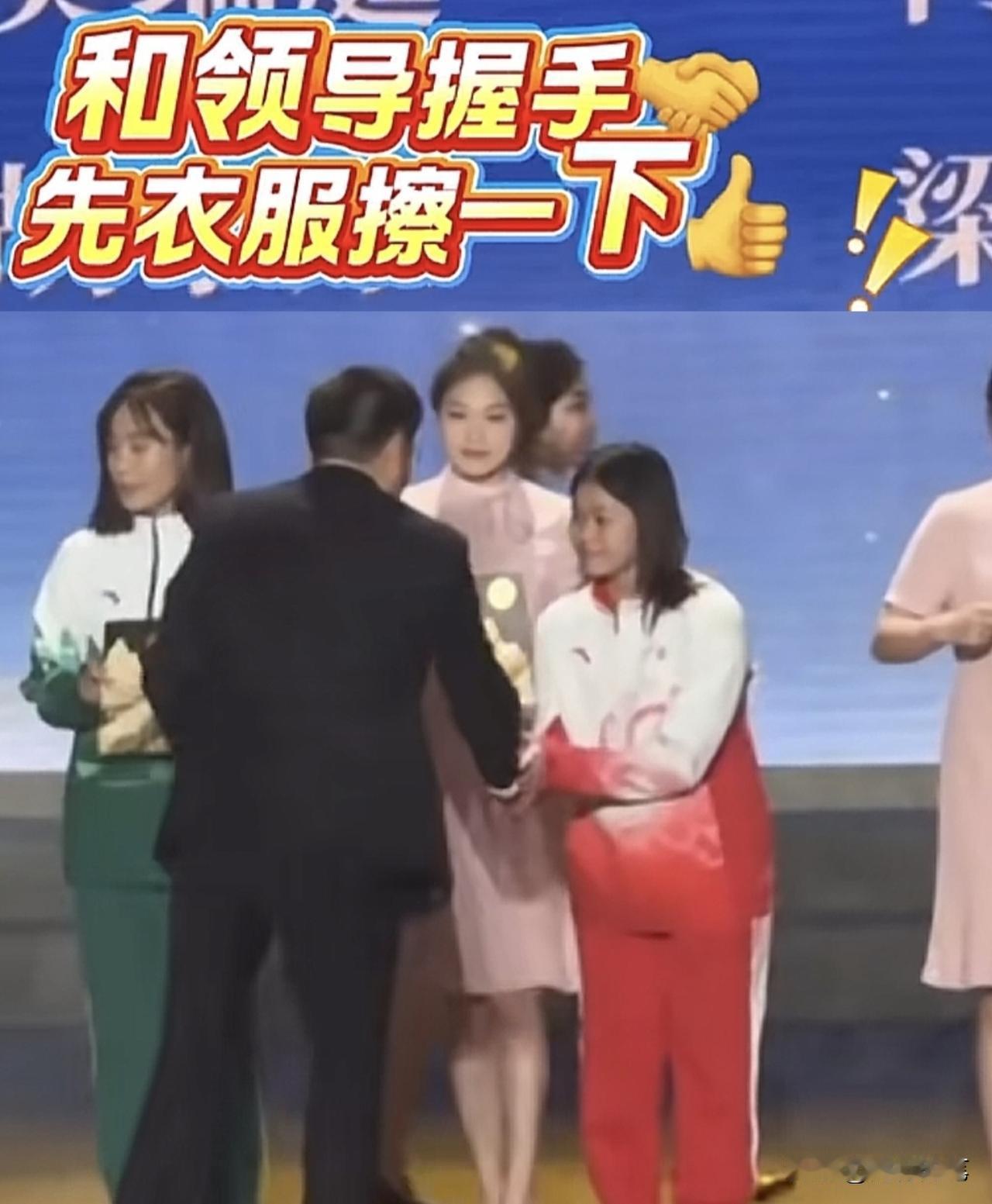 这么出名,还这么谦卑,又这么暖心周到,全红婵真的值得被这么多人喜欢。 在18日回到暨南大学领取奖章时,全红婵的一举一动又引发了关注和赞赏。在台上领取奖章时毕恭毕敬,握手前还特地把手先擦一擦自己的衣服,然后双手再与领导握手问候。另外,在其他运动员坐在台上接受采访时,躲在一边的全红婵又暖心的特地拿着几瓶水快步上前一一分给他们,然后从后面匆匆走下舞台。 与领导握手时的小动作是个人礼貌教养,主动拿水上台给运动员们是暖心,是乐于为人着想。这些个人魅力,虽然说很平常,但是不是每个人都能够做到如此真诚,而且还是已经如此出名,被追捧到如此高度的人,全红婵还能够宠辱不惊,保持如此可贵的品格,不飘飘然,确实非常难能可贵。 感觉全红婵的每一次出现,都能够从她身上发现一些可贵的人格魅力和人性的闪光点。