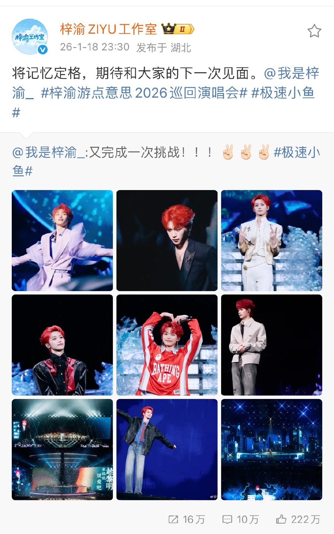 梓渝期待和大家的下一次见面梓渝晒武汉演唱会舞台照梓渝期待和大家的下一次见面