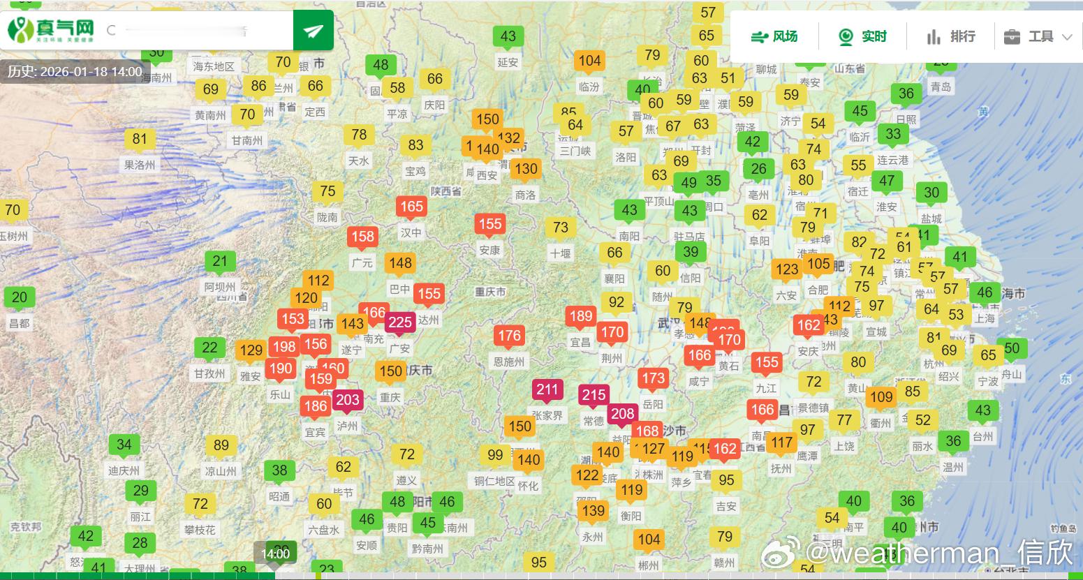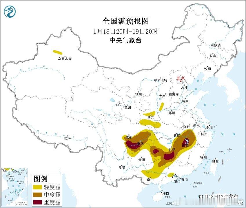 【雾 霾 沙尘】今晚到明晨,在冷空气到来前,四川盆地可能还有大雾。而且是雾霾混杂。从空气质量看,今天四川盆地的污染持续,另外江南一带的霾缓慢向西南推进。今晚到明天,霾可能从江西湖南向广西推进。另外今天冷空气灌入塔里木盆地,导致新疆南部出现沙尘污染,和田和克州出现爆表。今晚到明天沙尘还会持续。