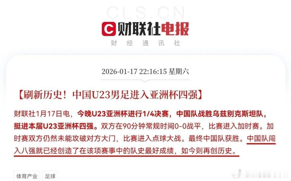 恭喜中国男足,创造了22年的历史都说国足和大A是难兄难弟,让人又爱又恨,曾经多少人说不看国足了,最后还是看了,又有多少股民说不炒了,最后又炒了,这就是足球和股市的魅力所在吧!现在国足都创历史了,四场比赛0封对手,铁血防守,还有门将封神,奇迹就这么发生了,或许这帮小伙子们半决赛还能给足球迷带来惊喜,带来快乐,那么大A股这次会创造奇迹,创历史新高么,能给股民们带来惊喜和快乐么?冥冥之中我感觉到了会!一定会!一定要相信!这就是玄学!