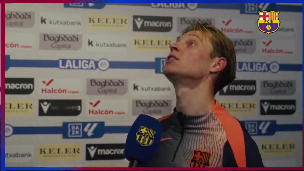 弗兰基·德容:裁判的态度可以更平易近人一些,而不是总是居高临下地看着你,好像你说了什么他就会掏牌似的。皇家社会2比1巴萨皇家社会vs巴萨巴萨