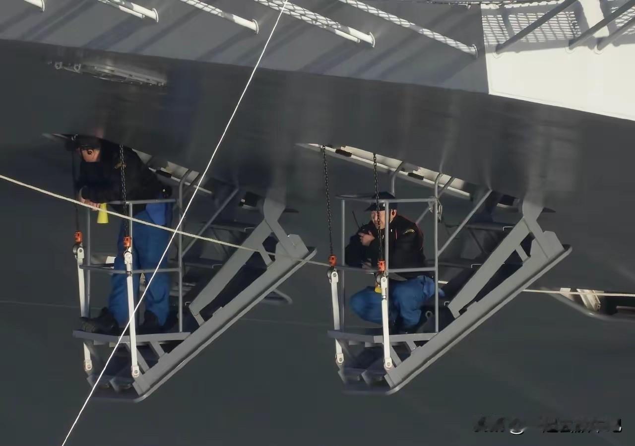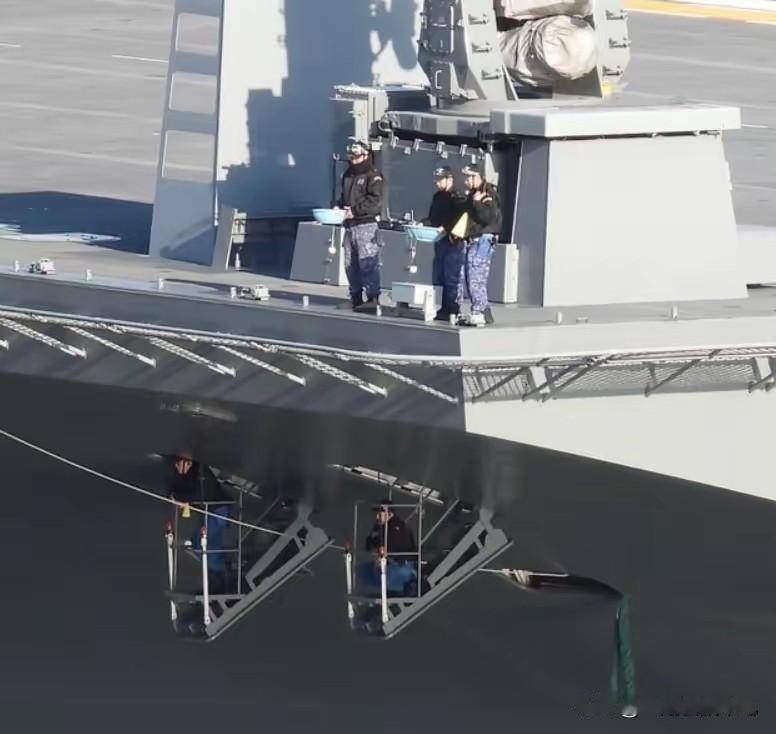 小日子这是什么操作? 日本的一艘军舰,下面的舷梯上有两个人,一个蹲着,一个站着,上面还有人端着水盆,这是在干嘛? 引导军舰靠岸吗? 还是在给军舰做维护和保养的工作。 不过,外观来看,小日子造军舰的水平还是不错的,军舰外表看上去比较平整。