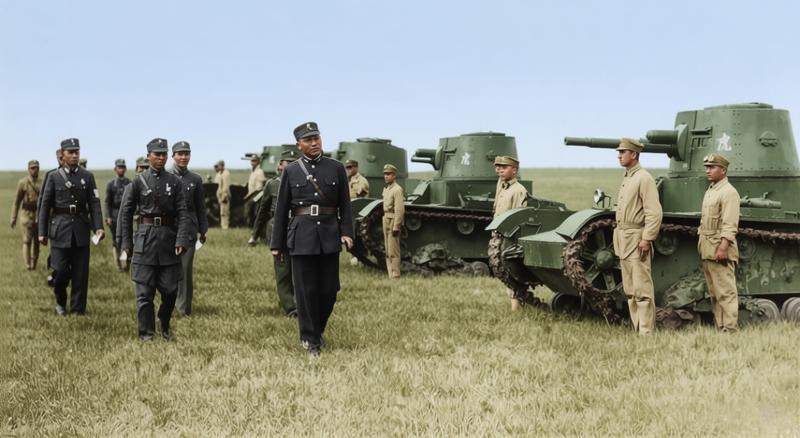 这张珍贵的老照片拍摄于20世纪30年代中期(约1935-1936年),地点很可能在南京附近军营训练场,记录了中国国民革命军陆军装甲兵团(中国最早的机械化部队)成立初期的一次重要检阅仪式。 照片中央,身着笔挺军服正是徐庭瑶将军,被誉为“中国装甲兵之父”的国民党高级将领。他时任陆军交辎学校教育长兼装甲兵团负责人,正缓步走过检阅队列,目光坚定,身后跟随几名军官。徐庭瑶1930年代初考察欧美军事后,向蒋介石力陈建立机械化部队的必要性,推动中国从无到有组建了第一个装甲单位。 镜头右侧,四辆整齐排列的英国维克斯Mark E型轻型坦克格外醒目。这些是1934-1935年间国民政府从英国维克斯公司进口的Type B单炮塔型,属于当时中国军队最先进的进口装甲力量。中国共进口约20辆此类坦克,主要装备装甲兵团第1连,成为抗战初期国军机械化部队的核心骨干。 这些维克斯6吨坦克后来全部编入陆军装甲兵团,在淞沪会战中首次投入实战,虽然因缺乏步兵协同、维修困难等原因损失惨重(几乎全军覆没),但它们是中国军队最早以坦克对抗日军现代化部队的宝贵尝试,标志着中国陆军从冷兵器时代向机械化转型的艰难起步。